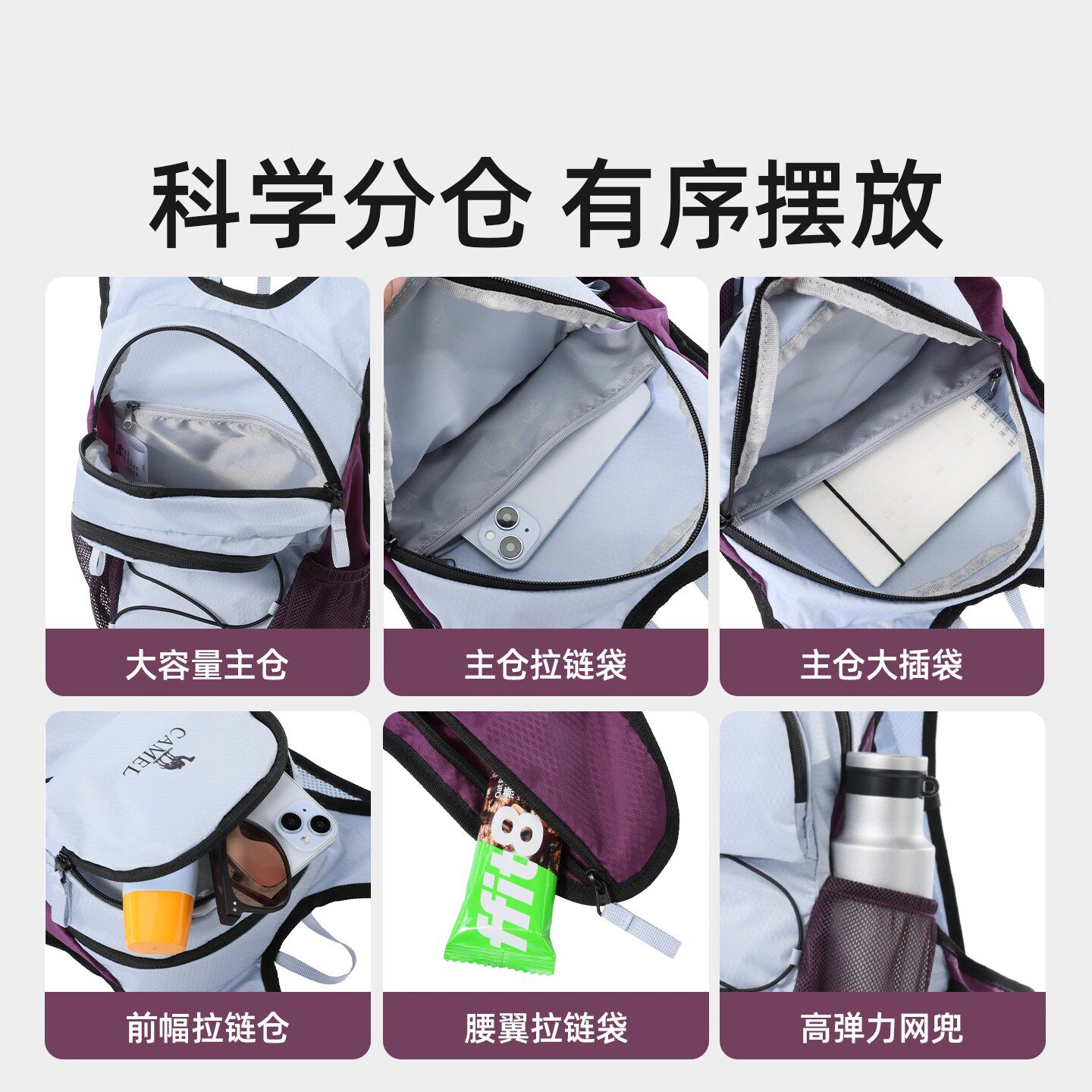 骆驼轻量化出游双肩背包拼色可折叠轻便旅游小型户外徒步登山包