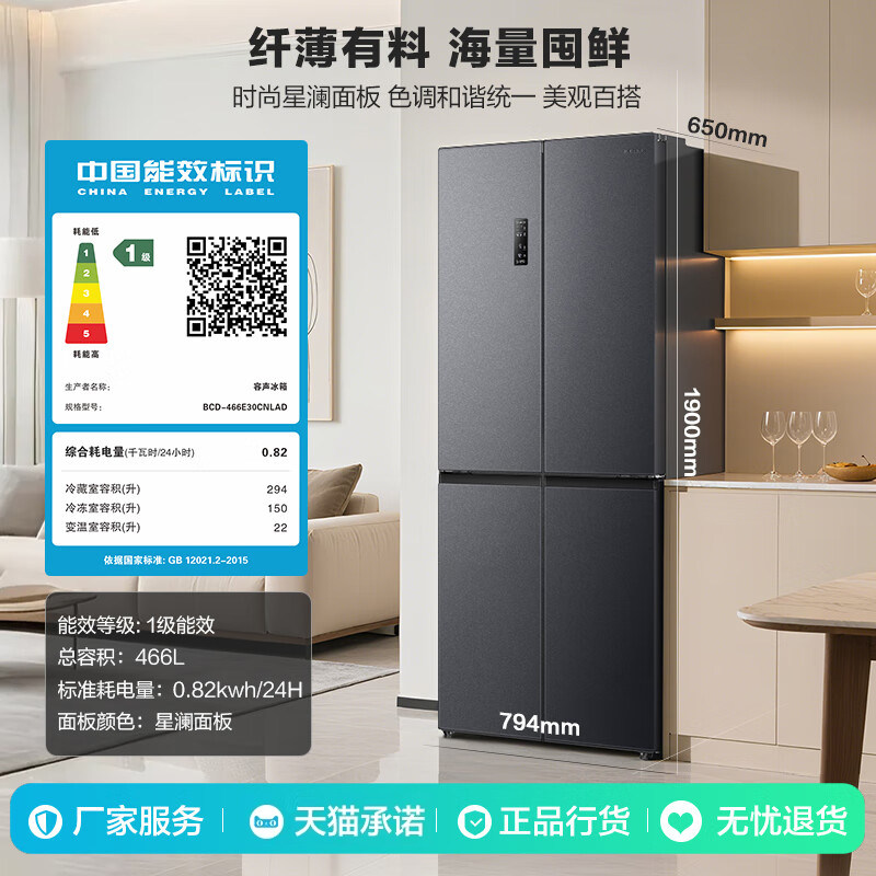 容声466L十字双开四门大容量冰箱家用一级变频风冷无霜换新补贴