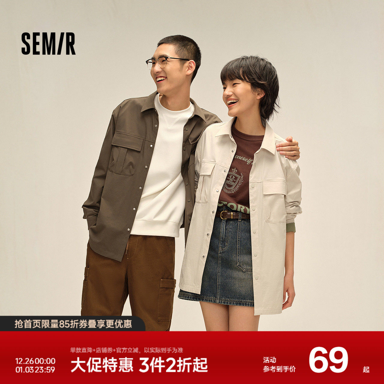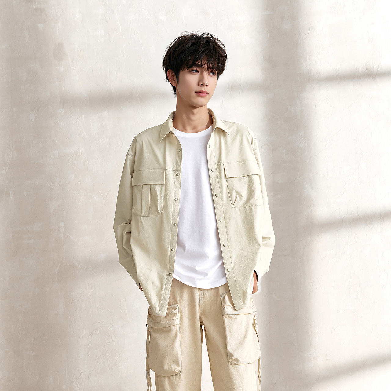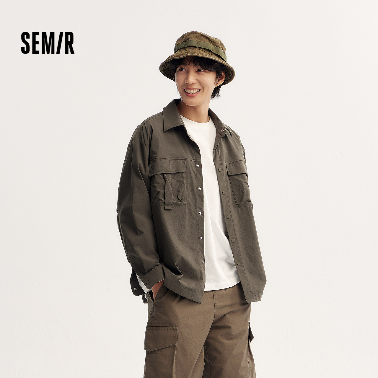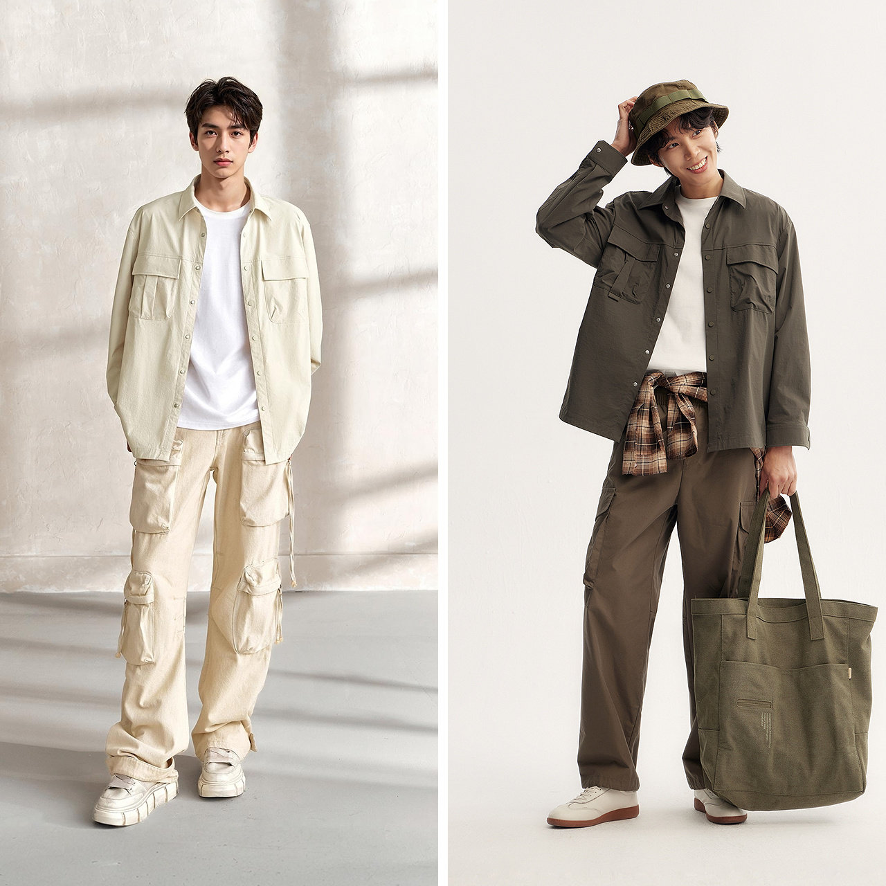森马长袖衬衫男外穿式山系户外工装外套宽松纯色百搭秋装翻领上衣