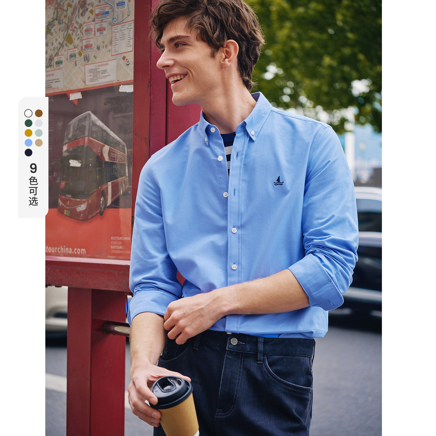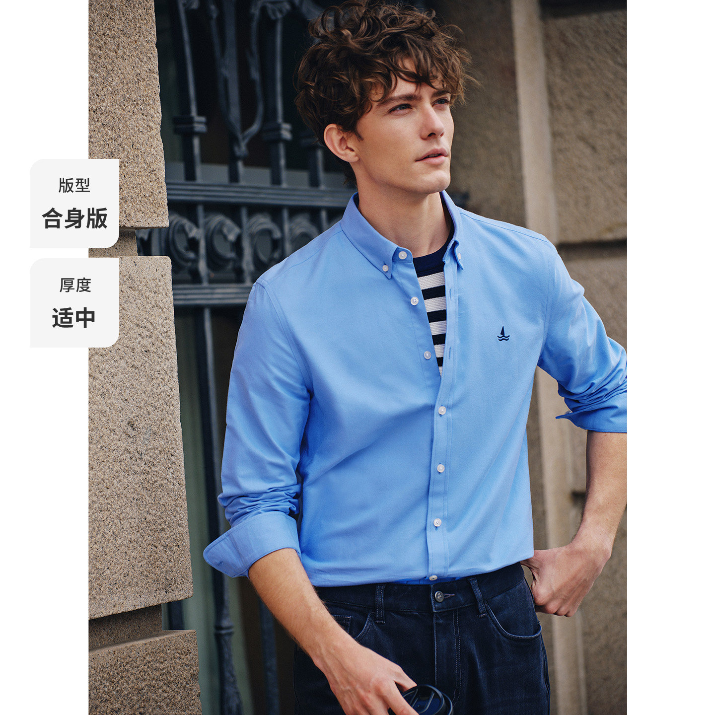 Navigare意大利小帆船浅蓝色休闲衬衫男春春季新款牛津纺长袖衬衣
