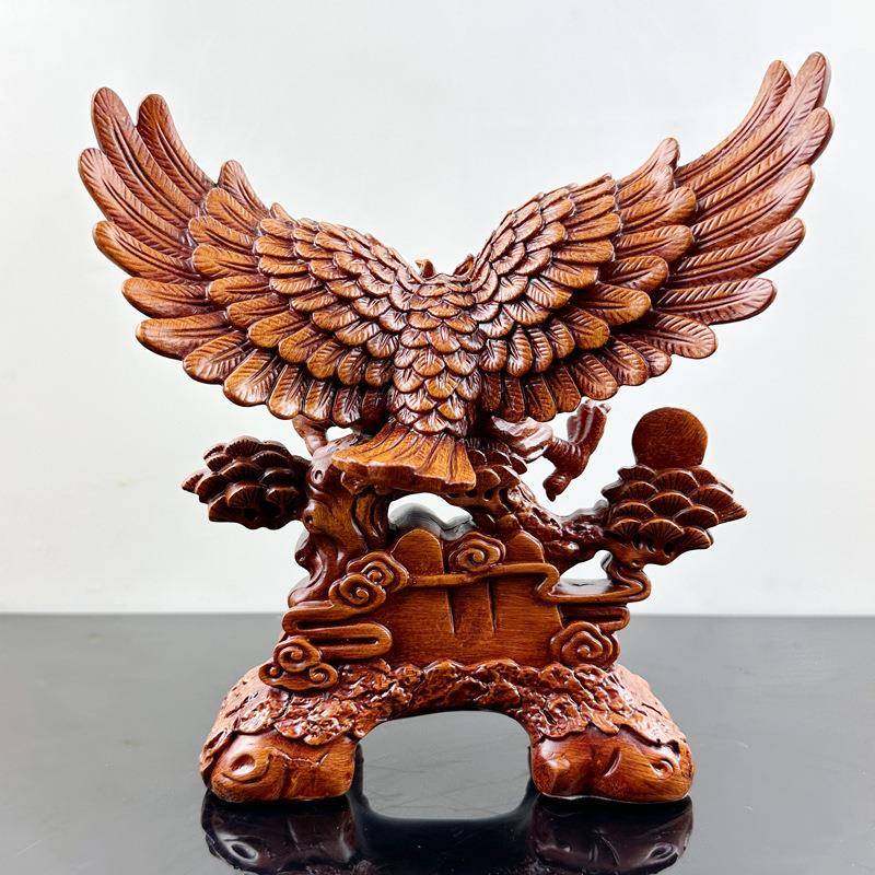 新款上市大展宏图老鹰仿花梨木木雕摆件家居客厅办公室装饰摆设