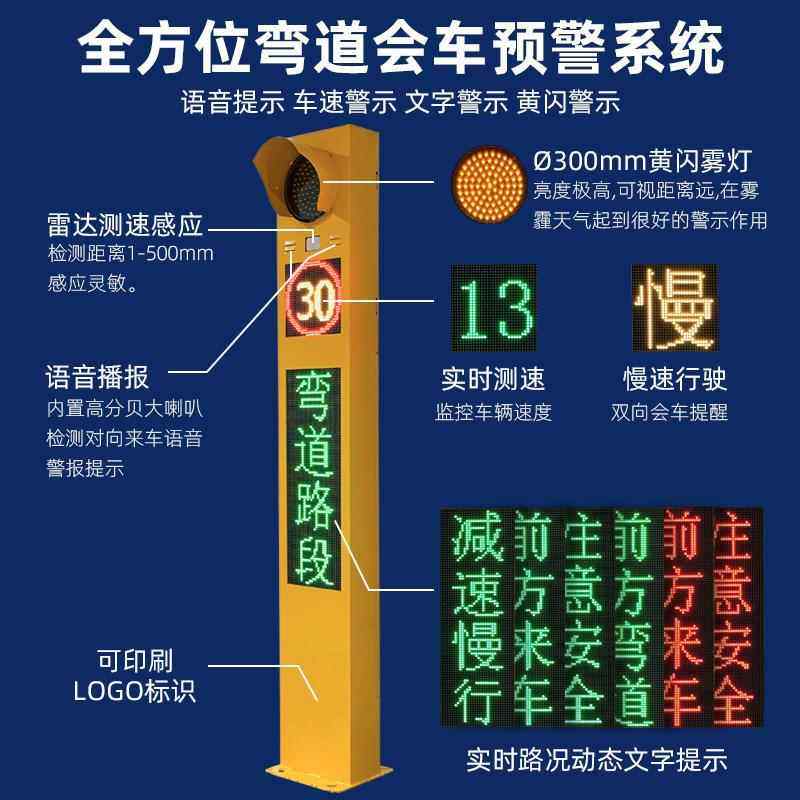 厂家供货弯道预警雷达提醒路口语音警示LED山路会车雷达测速仪