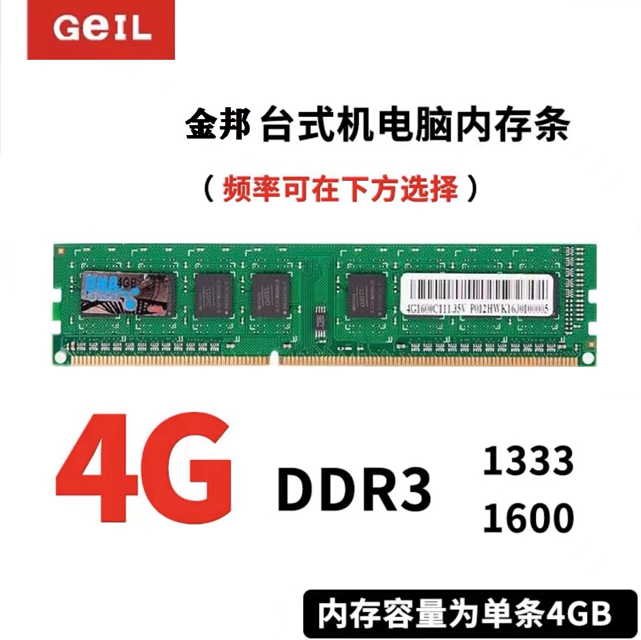包邮Geil金邦DDR3 4G 1600台式机内存条联保兼容金士顿2G 4G1333