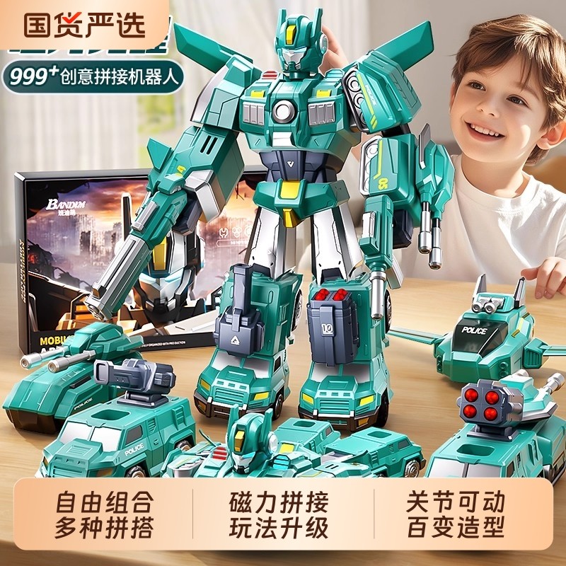 磁力拼接玩具儿童男孩益智拼装变形工程车金刚机器人生日礼物3岁6