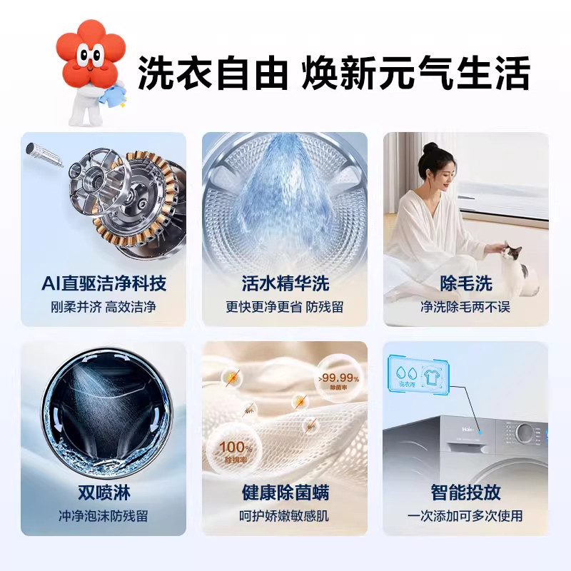 [换新补贴]海尔小红花滚筒洗衣机家用全自动直驱精华洗大容量35D