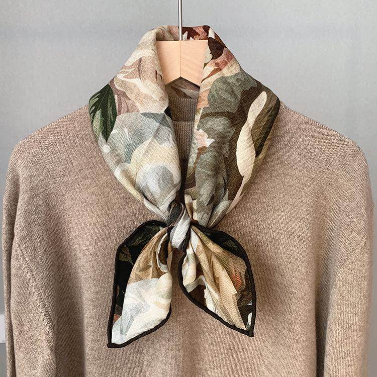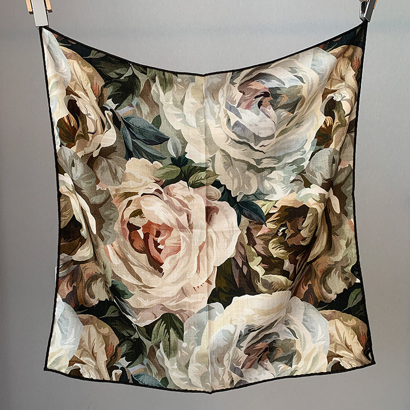玫瑰的故事 法式油画风桑蚕丝羊毛秋冬百搭保暖65中方巾丝巾围巾