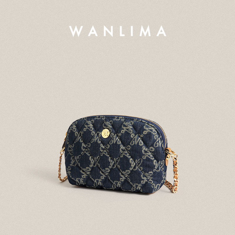 万里马丹宁贝壳包女链条包菱格mini迷你单肩饺子包斜挎手机包