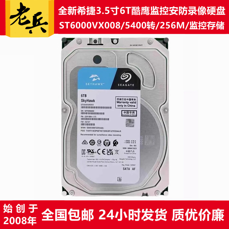 希捷酷鹰3.5寸6T监控硬盘ST6000VX009/ST6000VX008录像存储服务器