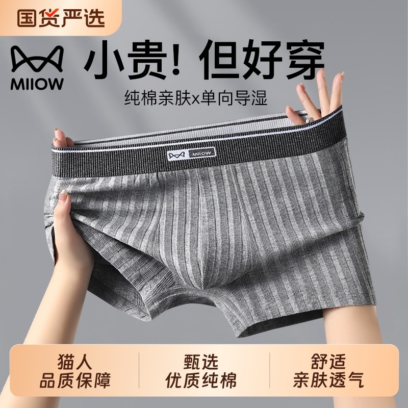 猫人名牌棉款内裤男士2025新款平角抗菌四角短裤男款式青少年裤衩