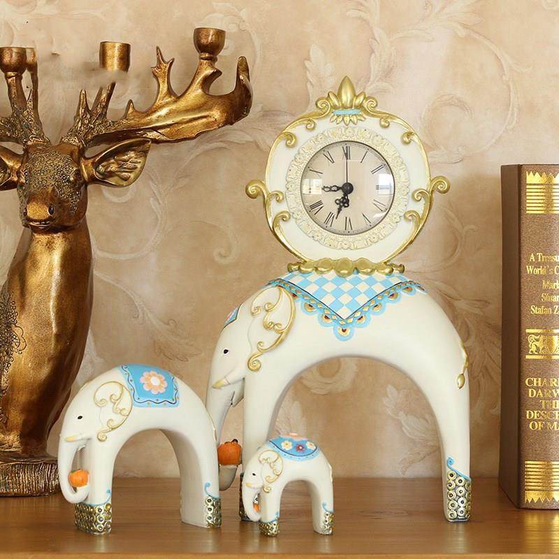 厂家直销 创意小象装饰座钟摆设 客厅卧室时钟 树脂工艺品摆件