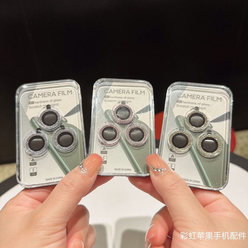 镶钻苹果17镜头膜钛合金适用于iPhone16Promax闪钻摄像头保护膜iphone14plus相机13/12/11带钻防摔手机镜头膜
