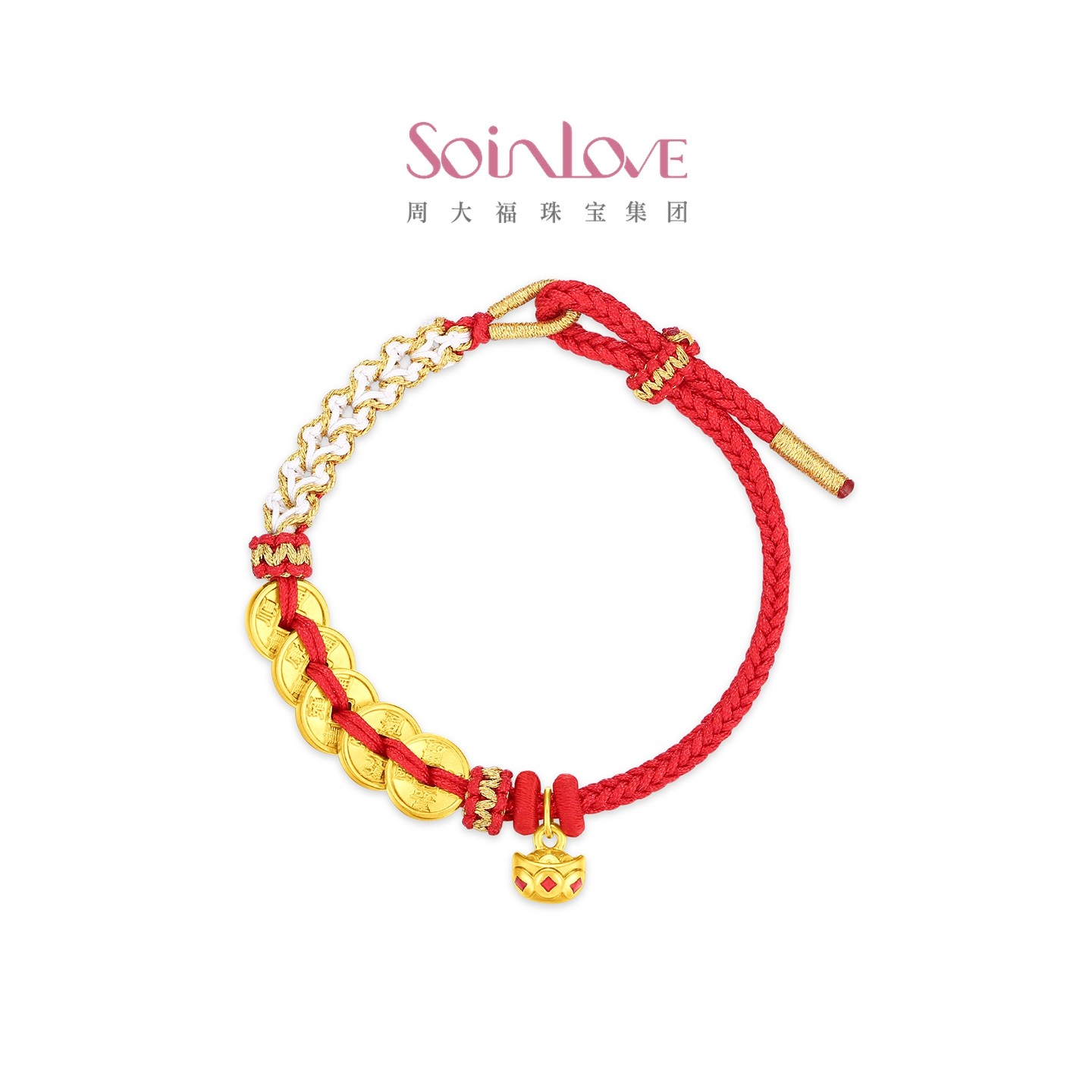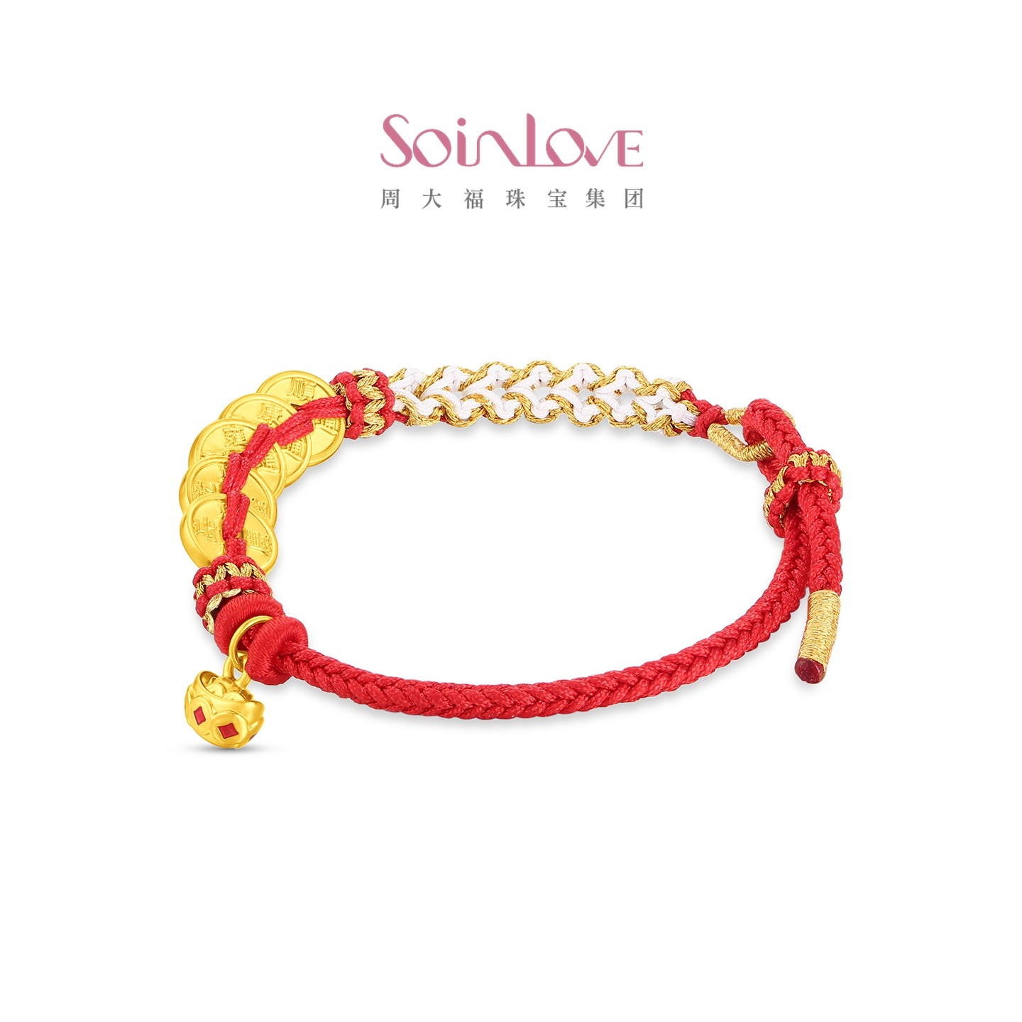 周大福SOINLOVE 蜜粉金十里红妆五帝钱黄金手链 VR2020圣诞礼物
