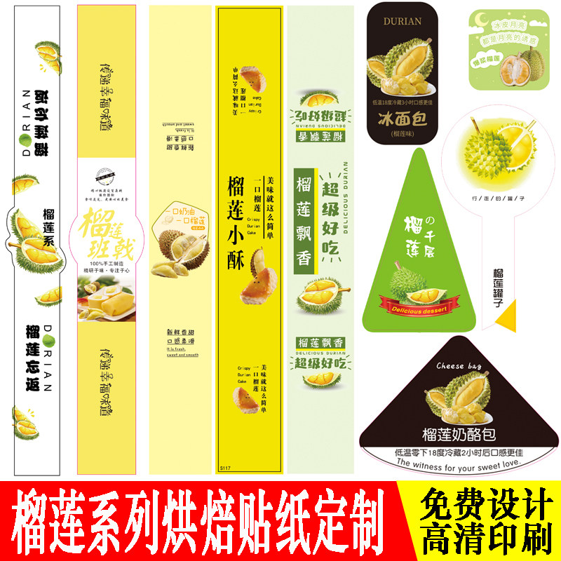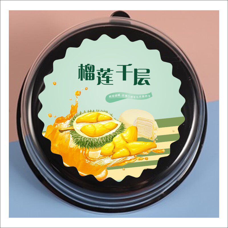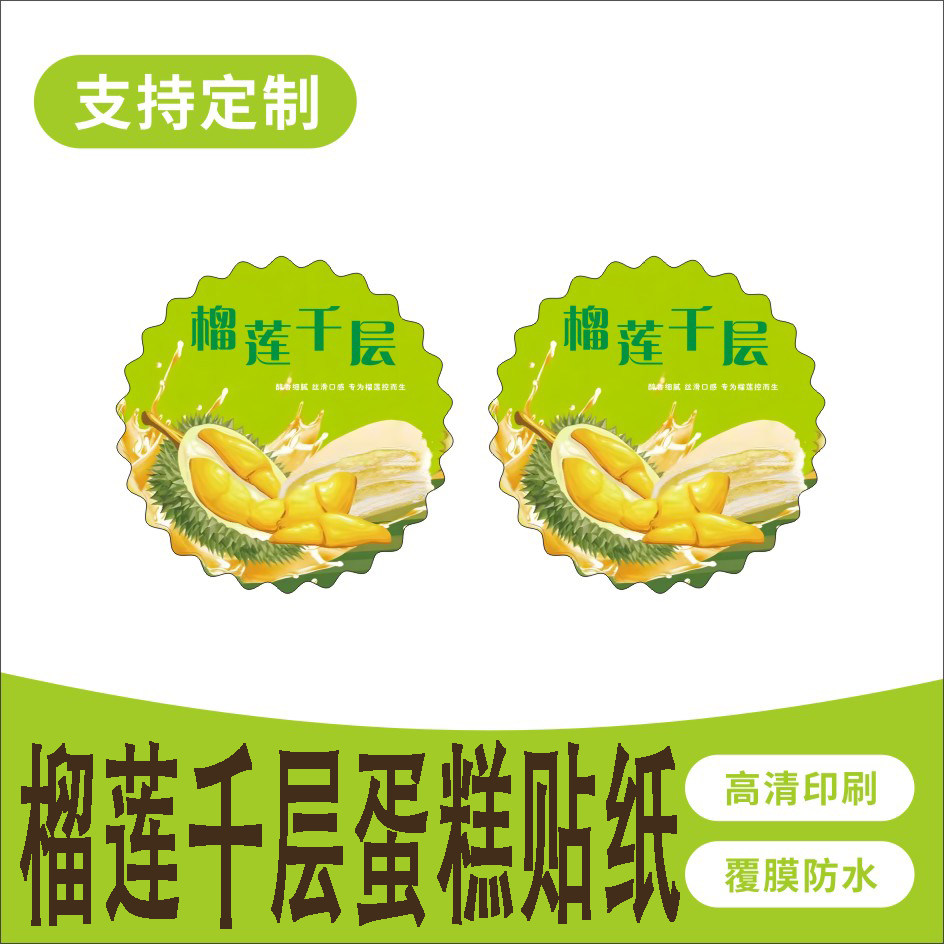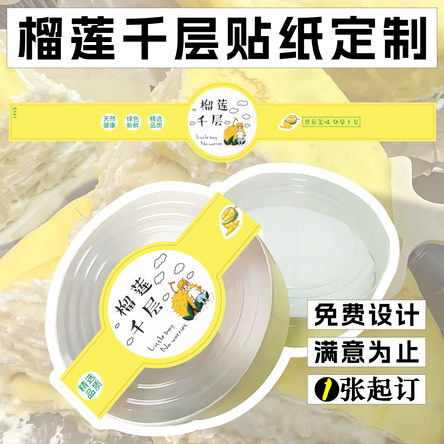 定做榴莲千层蛋糕不干胶贴纸烘焙食品甜品长条封口贴印刷水果饮料标签贴纸彩色不干胶瓶贴设计logo贴印刷定做