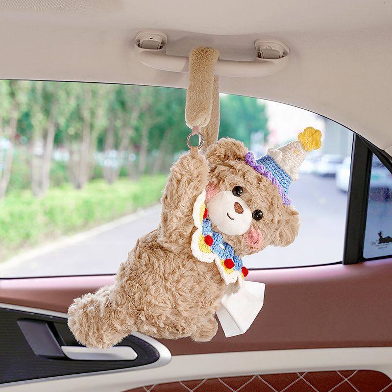 车载纸巾盒创意可爱小狗装饰抽纸盒车内挂式汽车纸巾袋车用纸抽盒