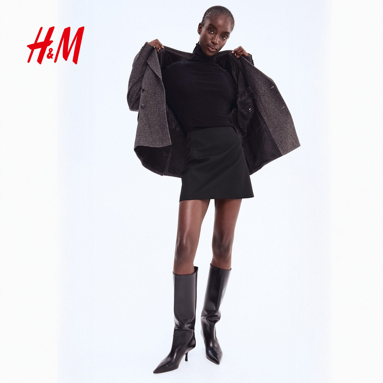 SIINSIIN直筒裙加绒2025年新款高腰收腹半身裙女黑色显瘦A字裙tk