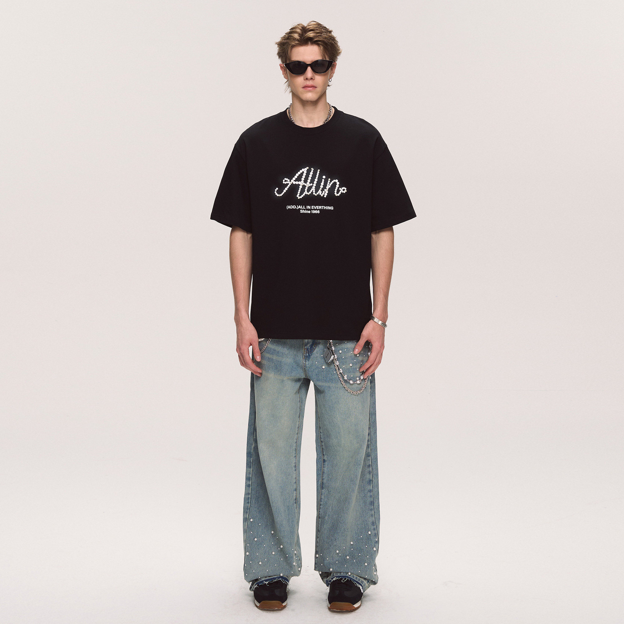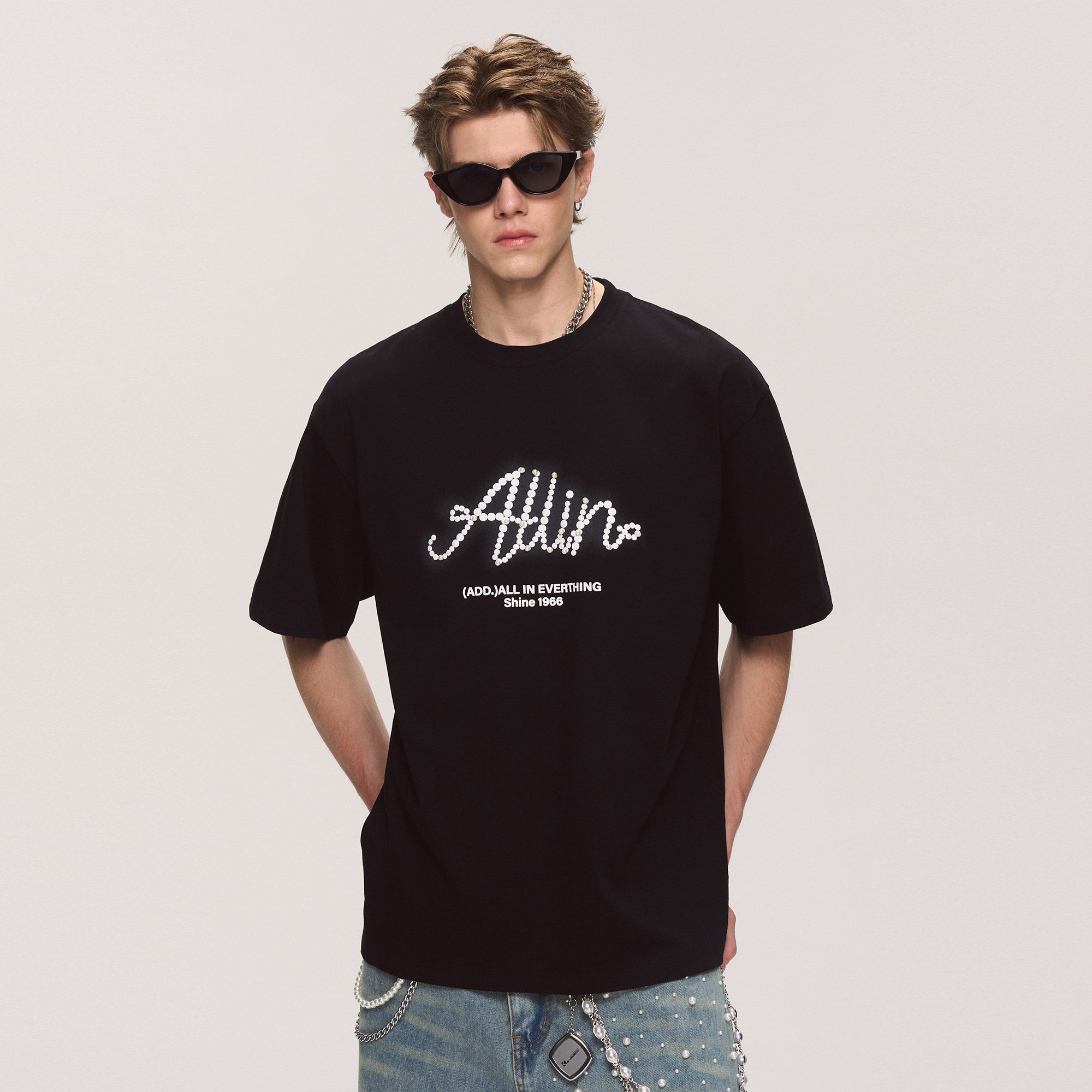 ALLIN 黑色短袖t恤男2025夏季新款潮牌纯棉重磅体恤情侣半袖上衣