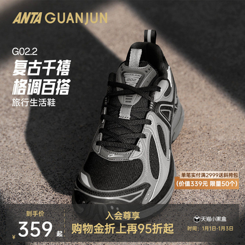 安踏冠军AG02 |全天候二代复古黑色老爹鞋休闲男女同款情侣运动鞋