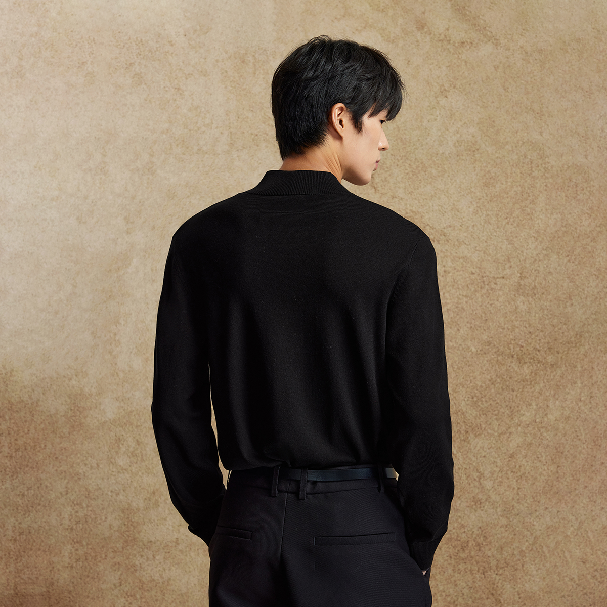 NEVERNEED亨利领套头毛衣男秋冬季美式慵懒风含绵羊毛针织衫外套