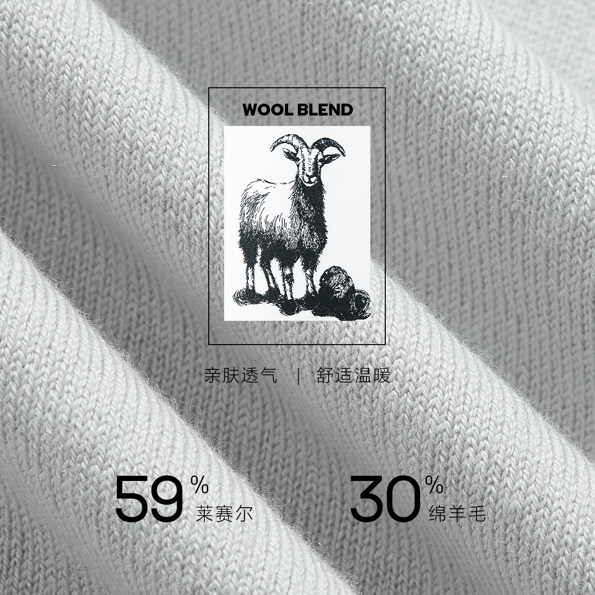 森马毛衫男冬季含羊绒针织衫发热抑菌2025新款基础圆领黑色打底衫