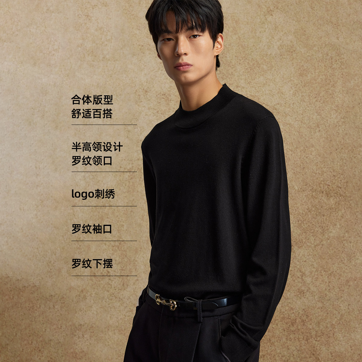 杰克琼斯男装男生2025年冬季款针织衫半高领羊毛长袖毛衣基础上衣