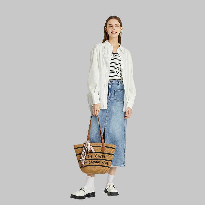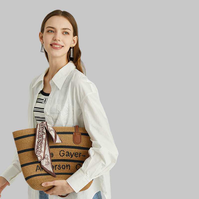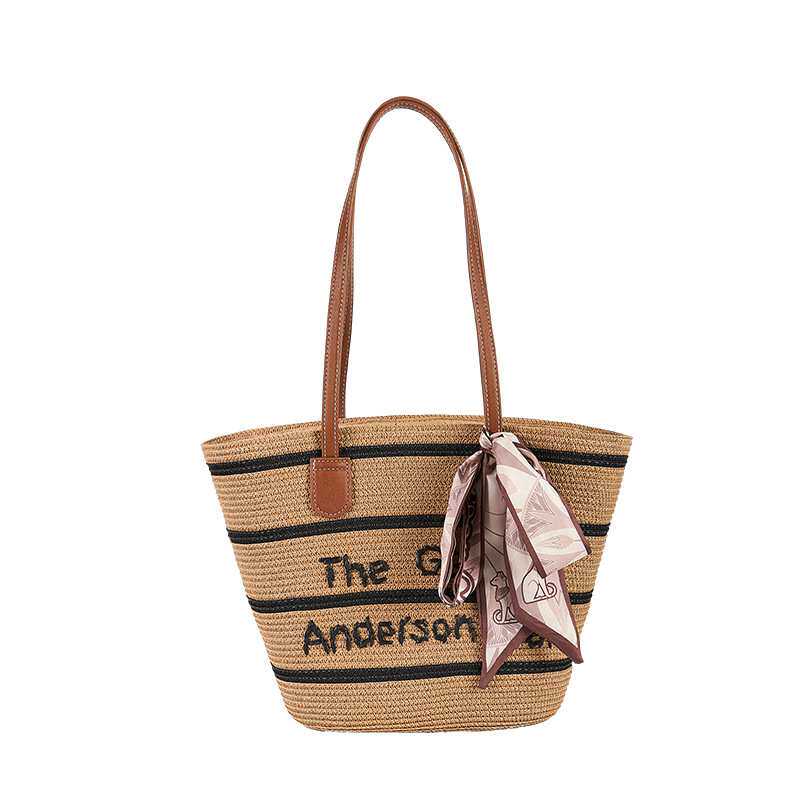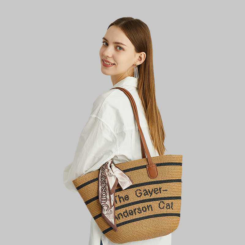 大英博物馆 盖亚·安德森猫系列 草编 沙滩包 托特单肩包 驼色