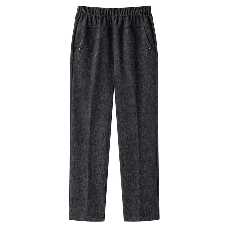 妈妈裤子春秋款松紧高腰弹力中老年女裤宽松大码直筒奶奶加绒长裤