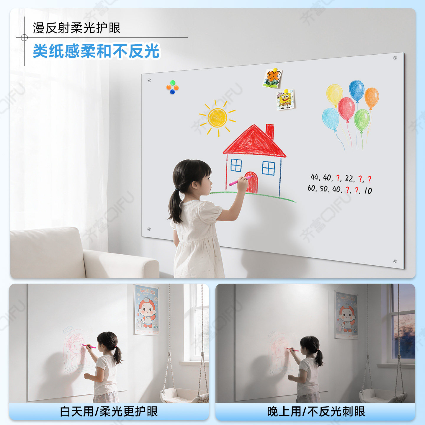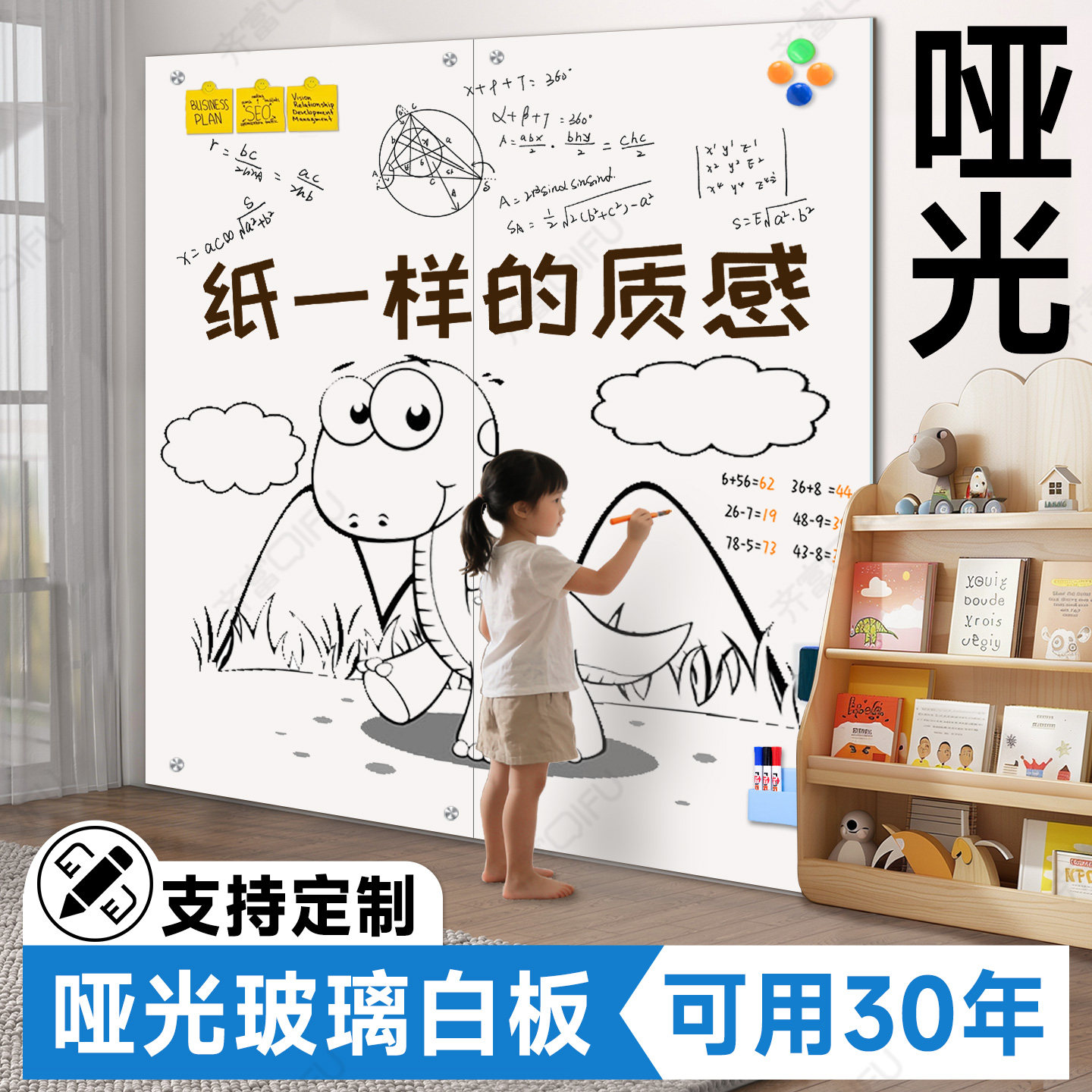 齐富磁性钢化玻璃白板写字板办公室会议书写黑板商用墙贴挂式家用儿童可擦写磁吸教学培训记事板留言板涂鸦墙