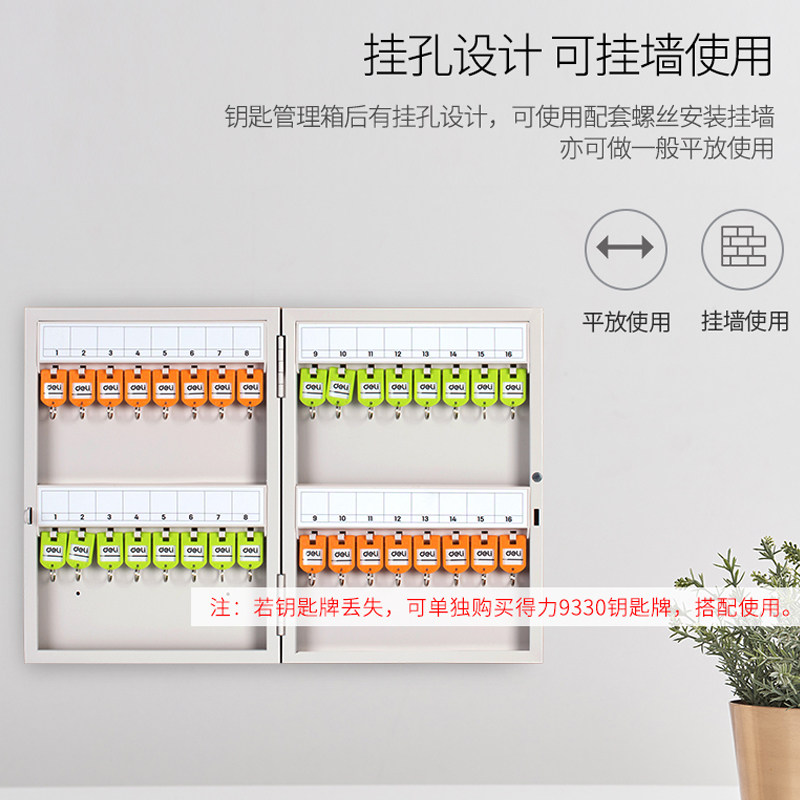 得力钥匙管理箱32位金属收纳柜9322壁挂式物业房产中介带锁保管盒