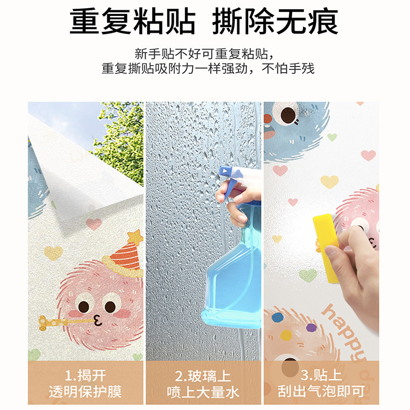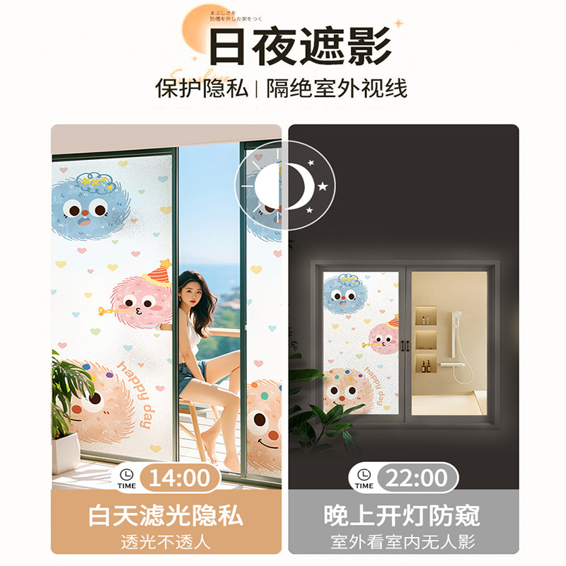 卡通静电玻璃贴纸透光不透明浴室卫生间防走光偷窥窗户保护膜贴膜