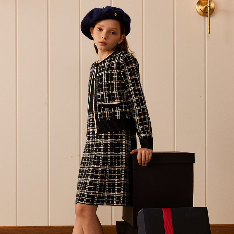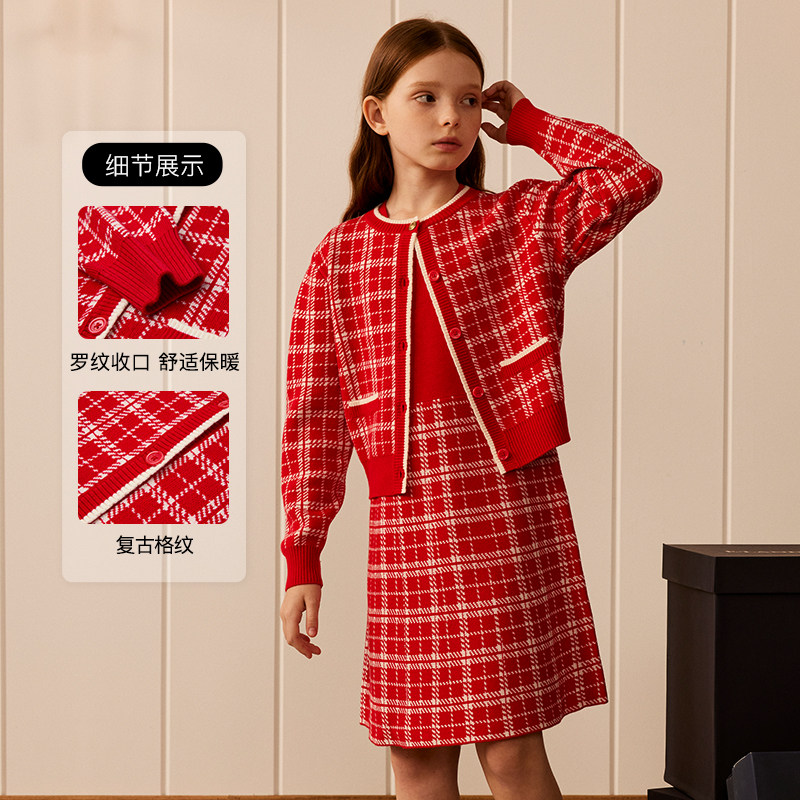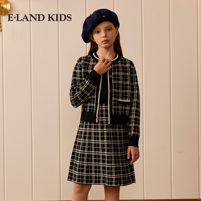 【含绵羊毛】eland kids衣恋童装女童针织套装春秋外套演出连衣裙