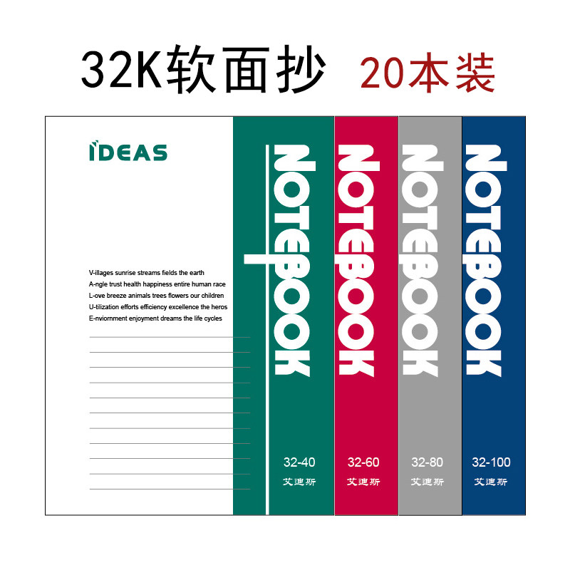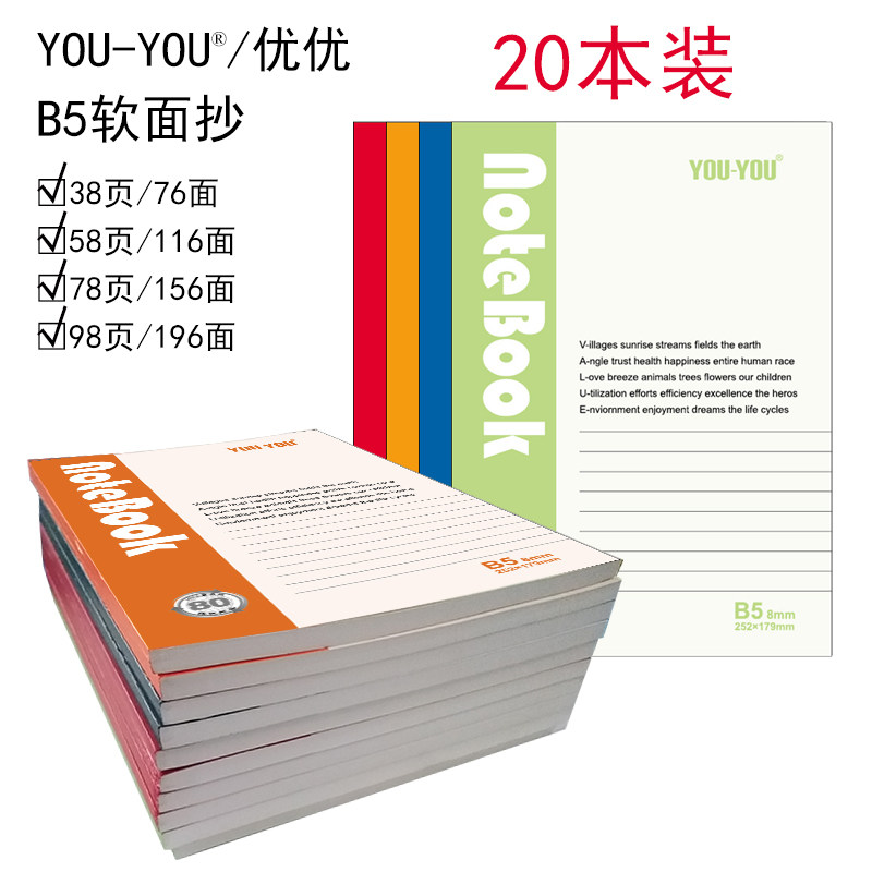 优优软面抄B5A5 40 50 60 80 100页纸张胶装记事本学生日记笔记本