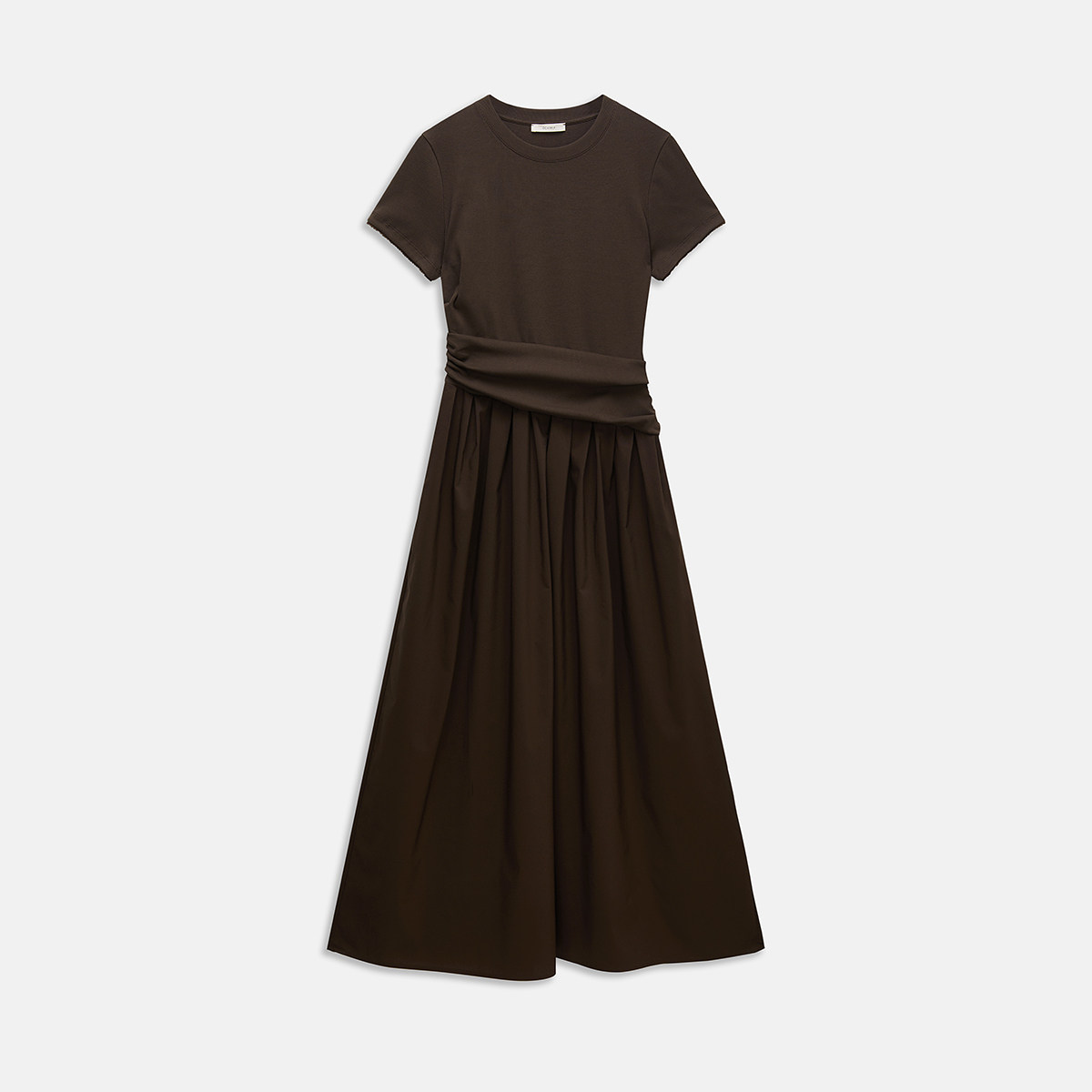 【热销补货】欧时力 褶皱短袖连衣裙女2026春新款收腰显瘦小黑裙