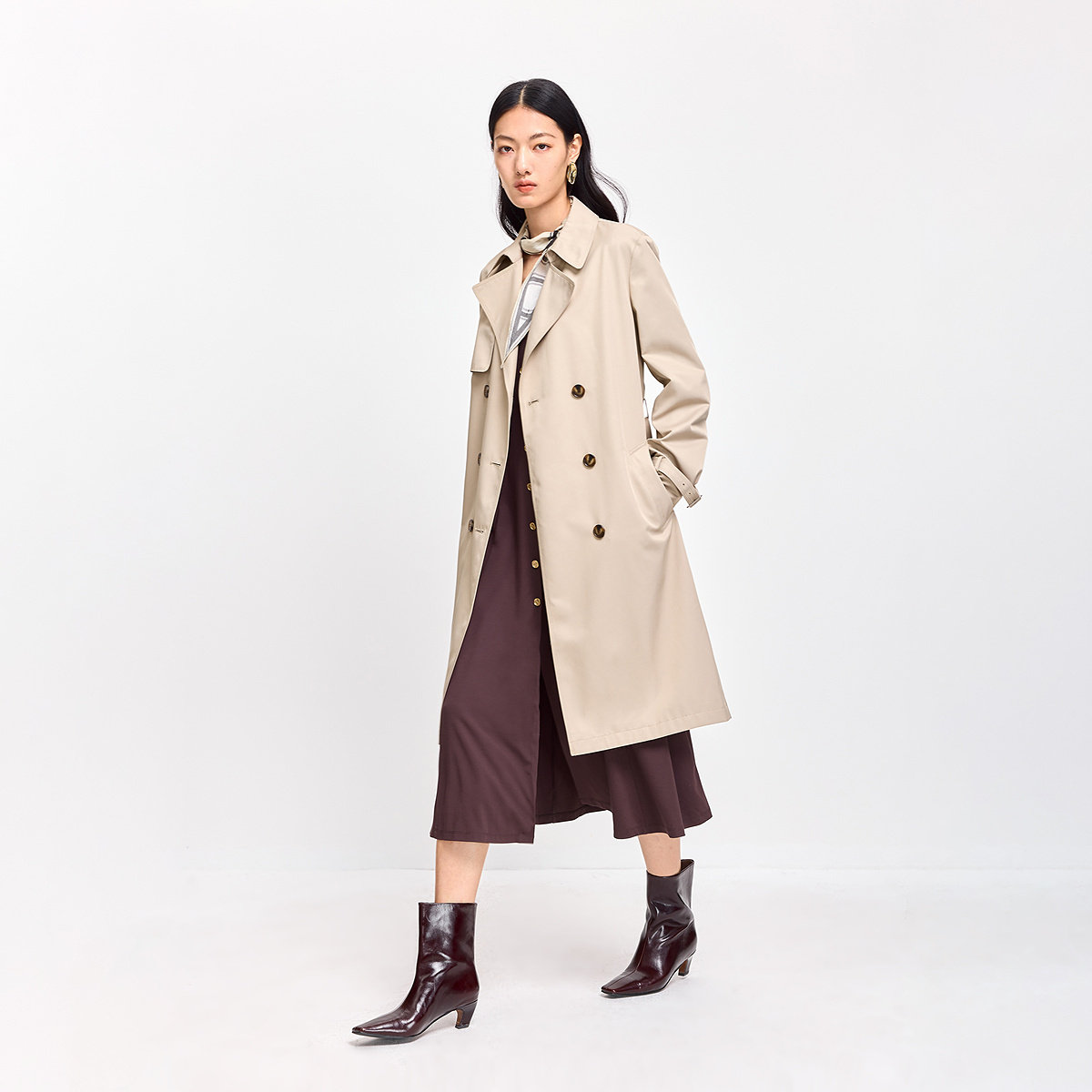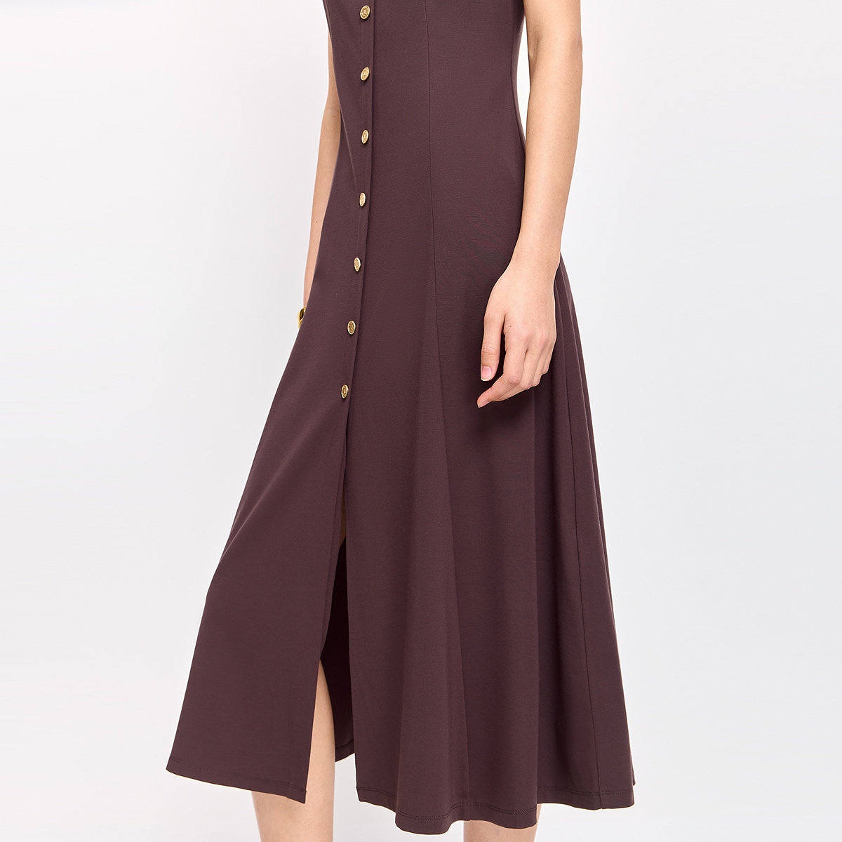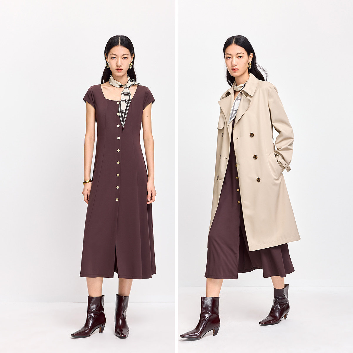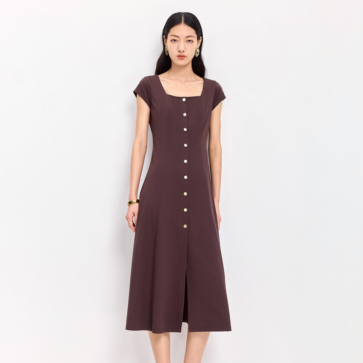 LILY2026夏新款复古大方领法式休闲气质通勤收腰短袖T恤连衣裙女