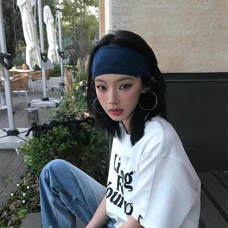 韩系纯色运动宽发带男女2025新款日常外戴头巾吸汗头戴发箍头套