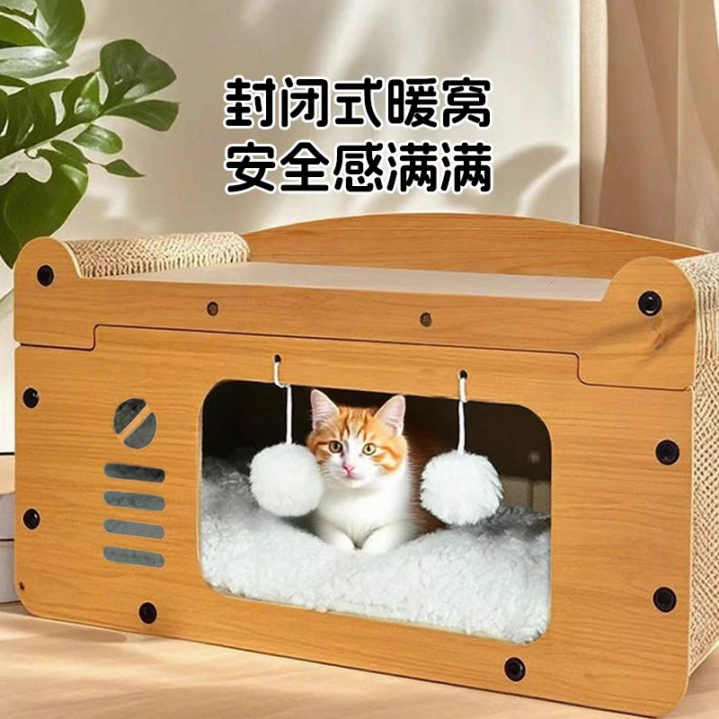 猫窝猫抓板四季通用窝冬季保暖耐磨不掉屑猫咪玩具一体封闭式猫屋