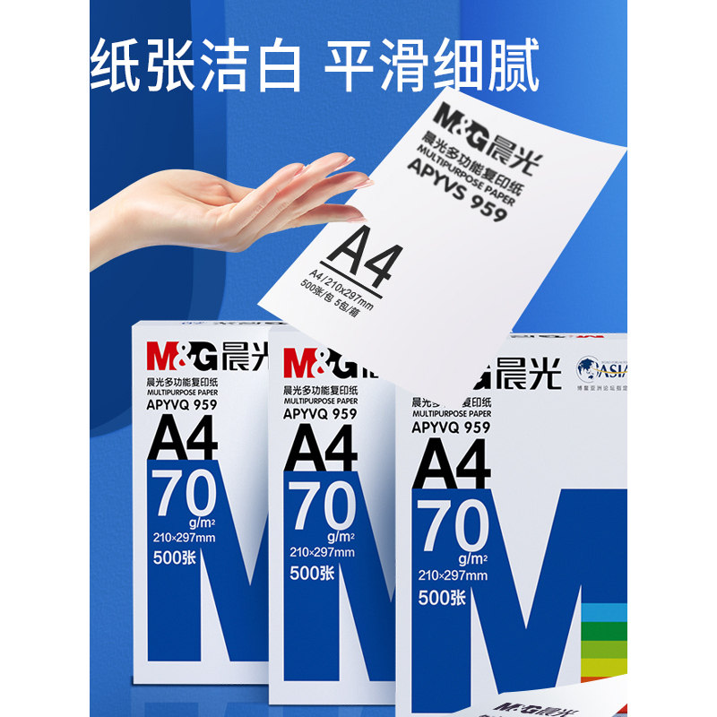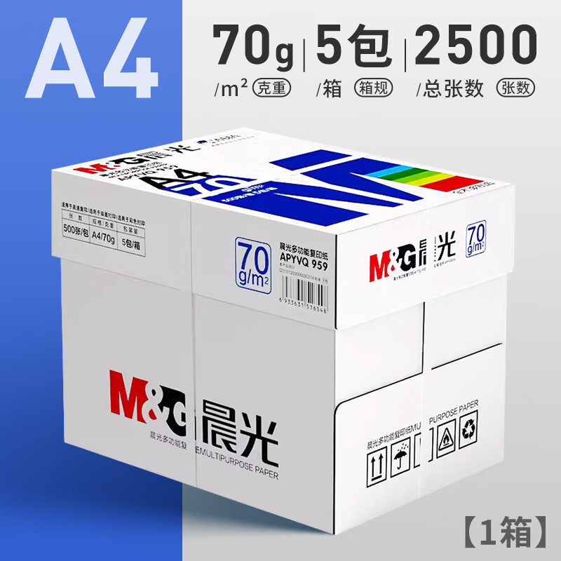 晨光A4纸70g/80g打印纸复印纸全木浆500页2500页草稿学生用办公用品a4纸打印白纸整箱5包装白色a4打印纸包邮