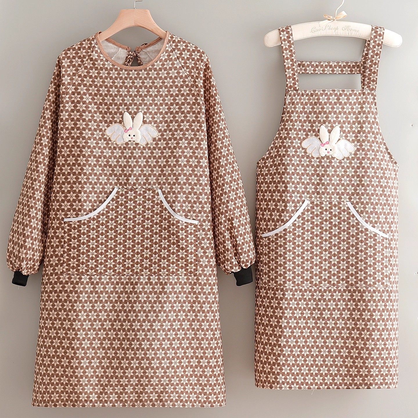 冬季加绒罩衣大人加厚长袖围裙防水韩版女时尚外套家用工作服定制