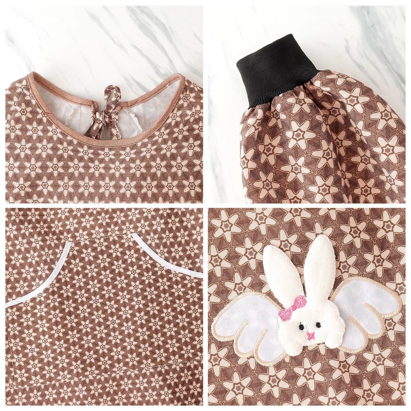 时尚帆布长袖围裙成人厨房防污罩衣背带兔卡通做饭围腰工作服印字