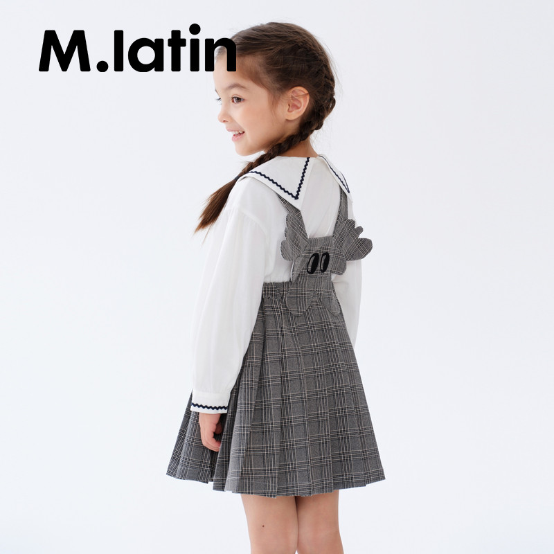 baleno junior春秋女童圆领长袖连衣裙撞色可爱时尚百搭纱纱裙子