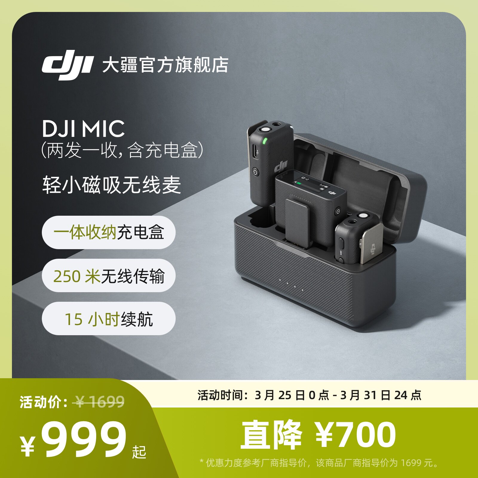 大疆 DJI Mic 无线麦克风 一拖二领夹式手机直播