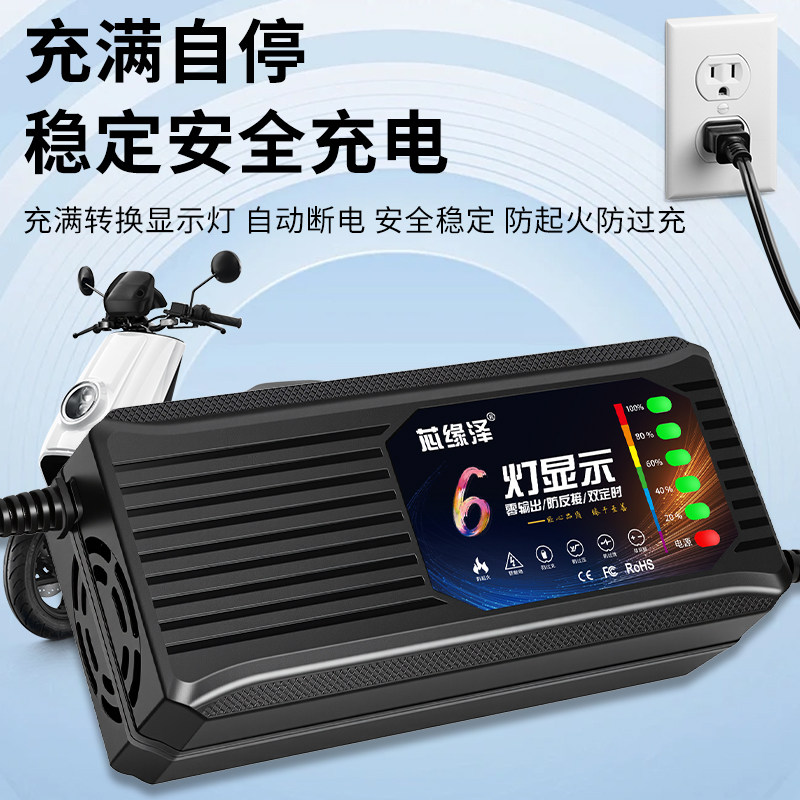 电动车充电器正品六灯自动断电智能48V60V72V铅酸二轮三轮车通用