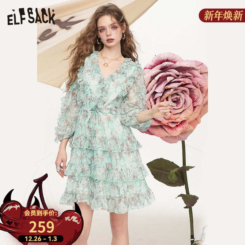 妖精的口袋法式v领荷叶边碎花连衣裙女2025夏季新款气质度假裙子
