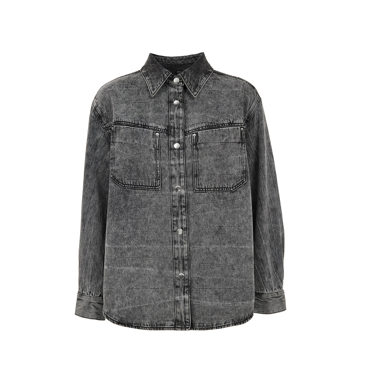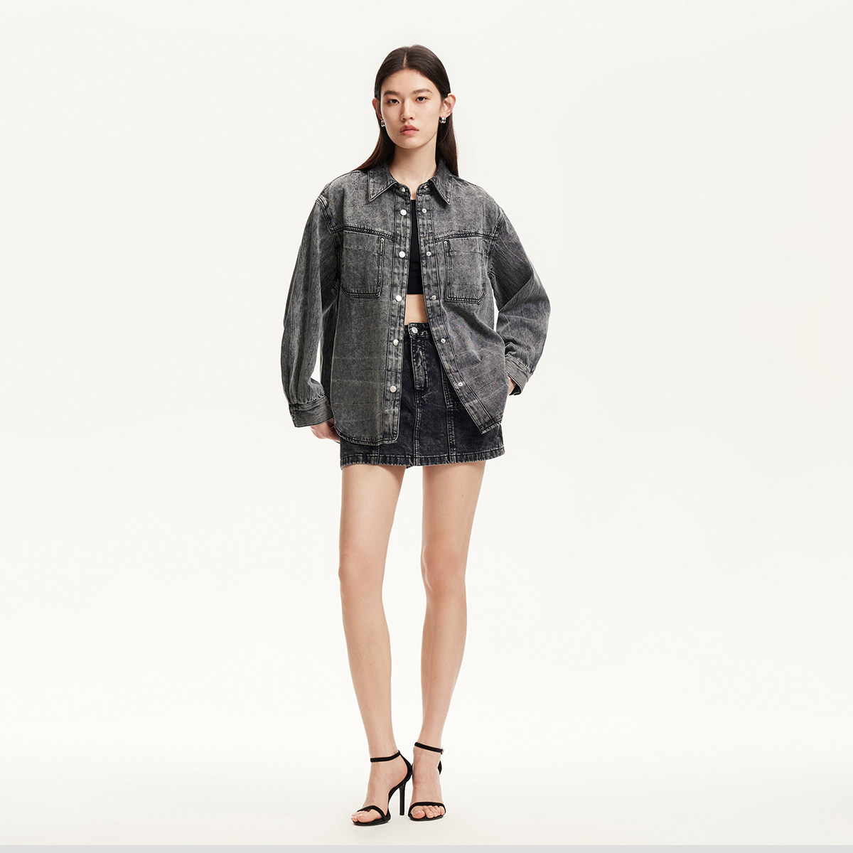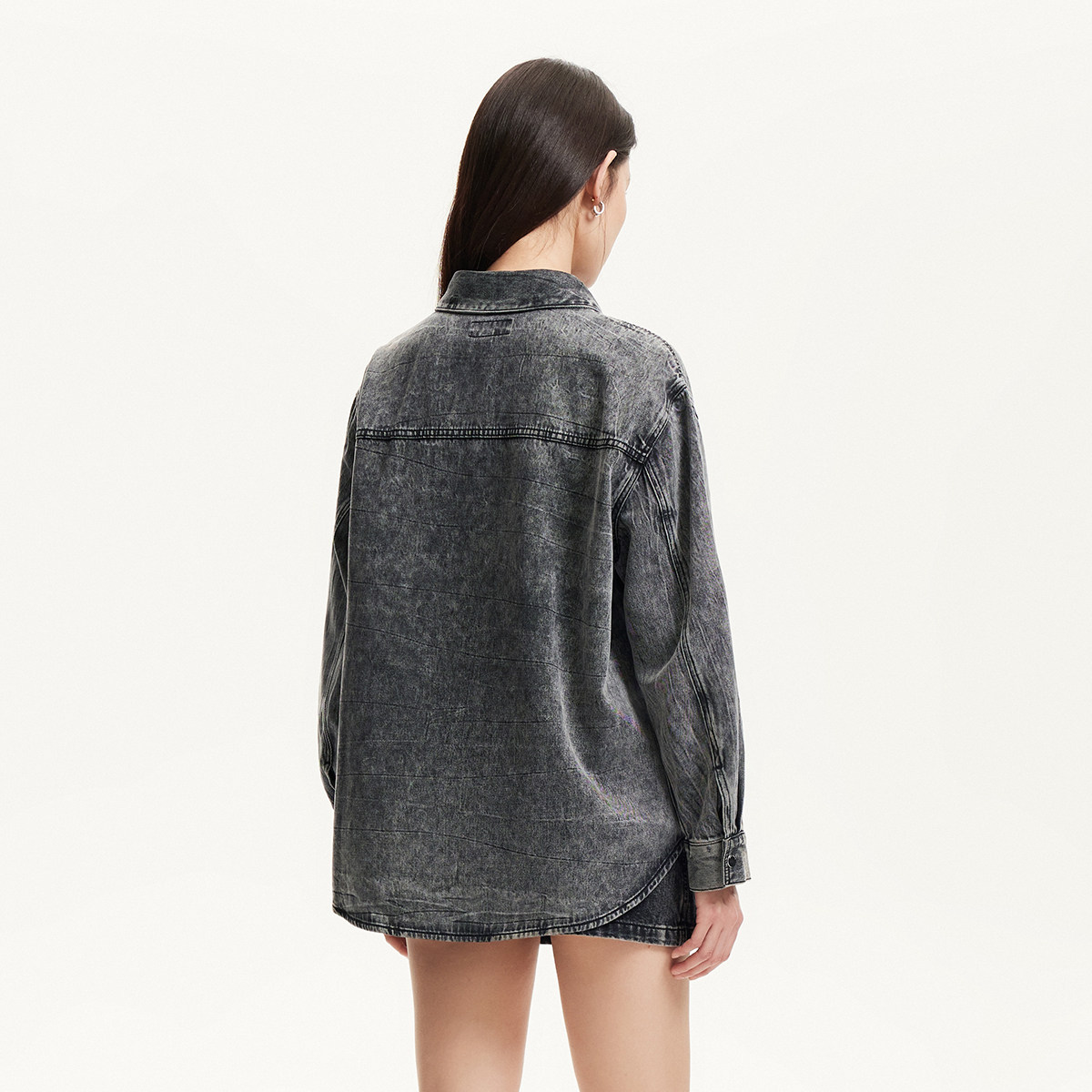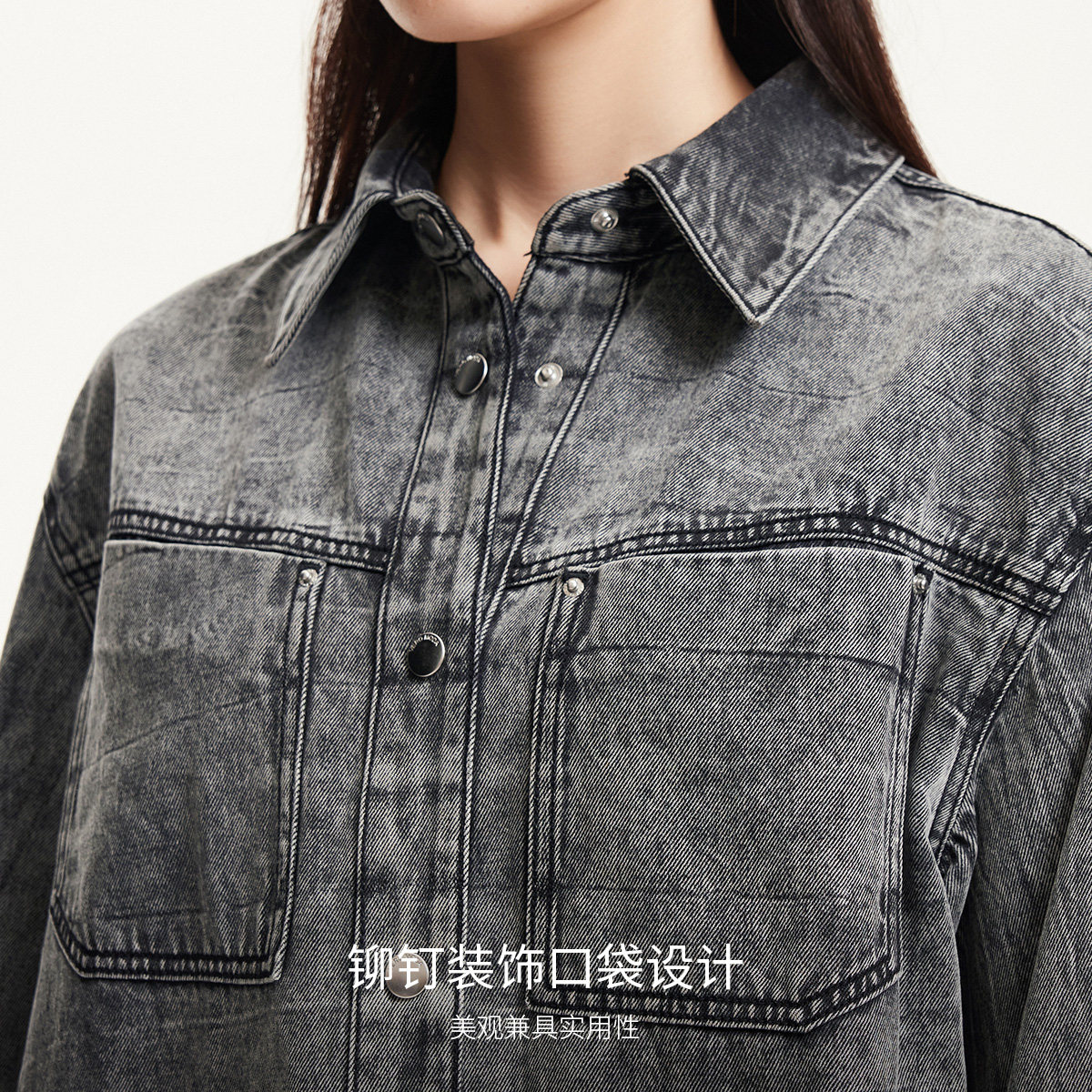 森柔|森马牛仔衬衫女春中长款oversize落肩长袖衣服格纹街头衬衣