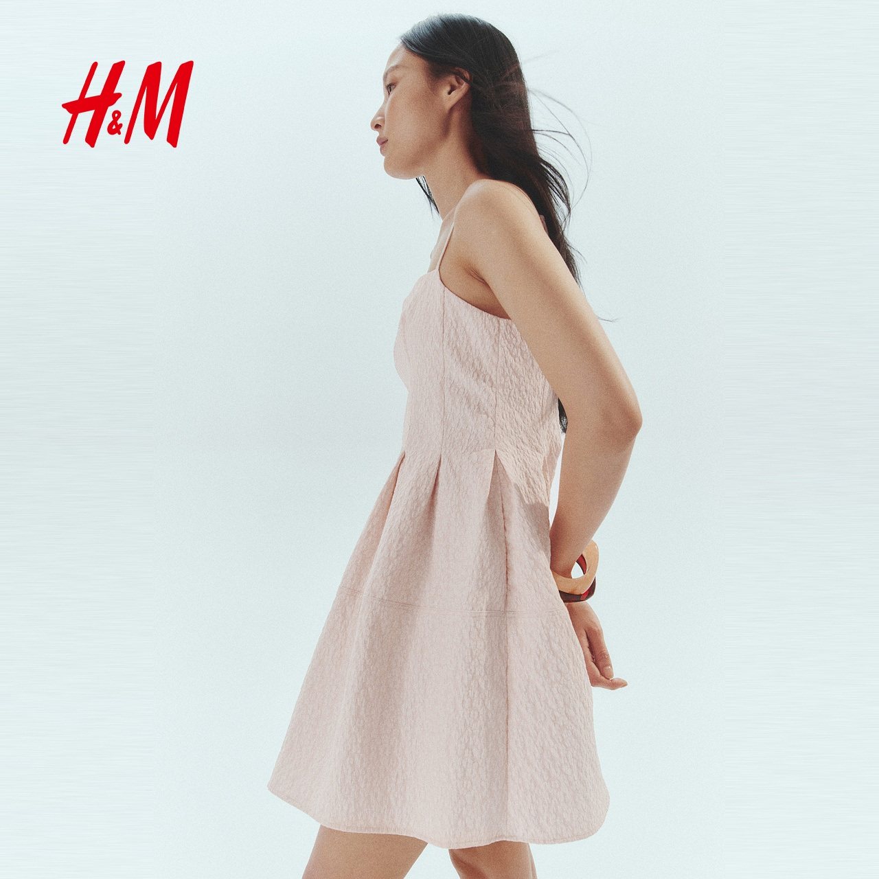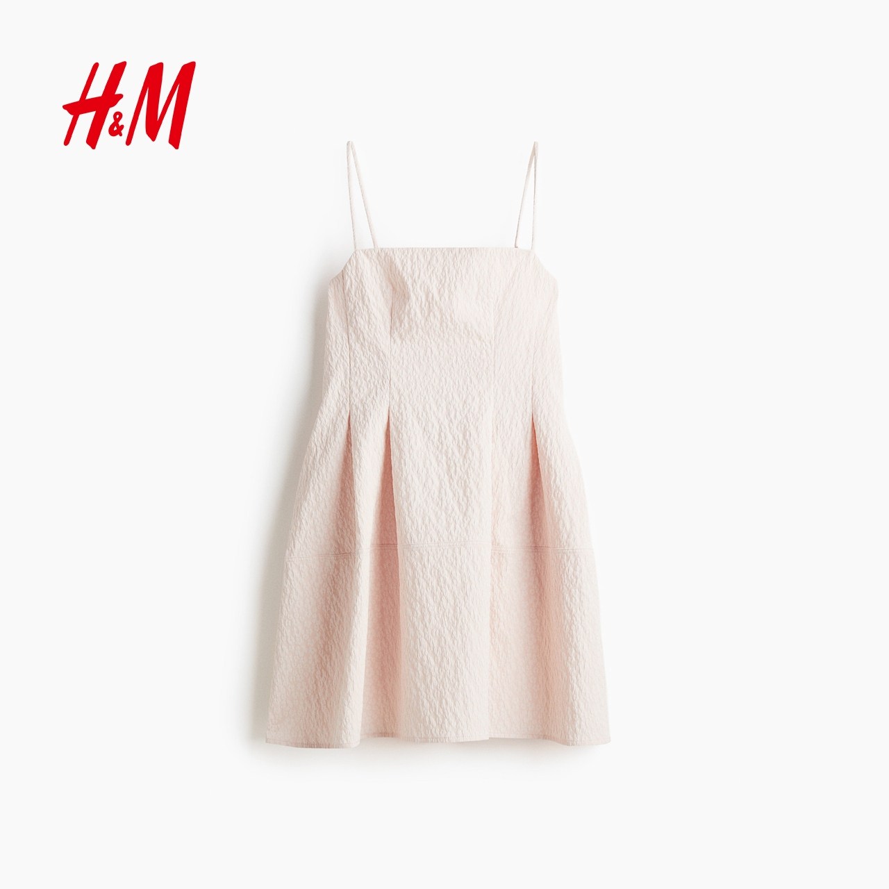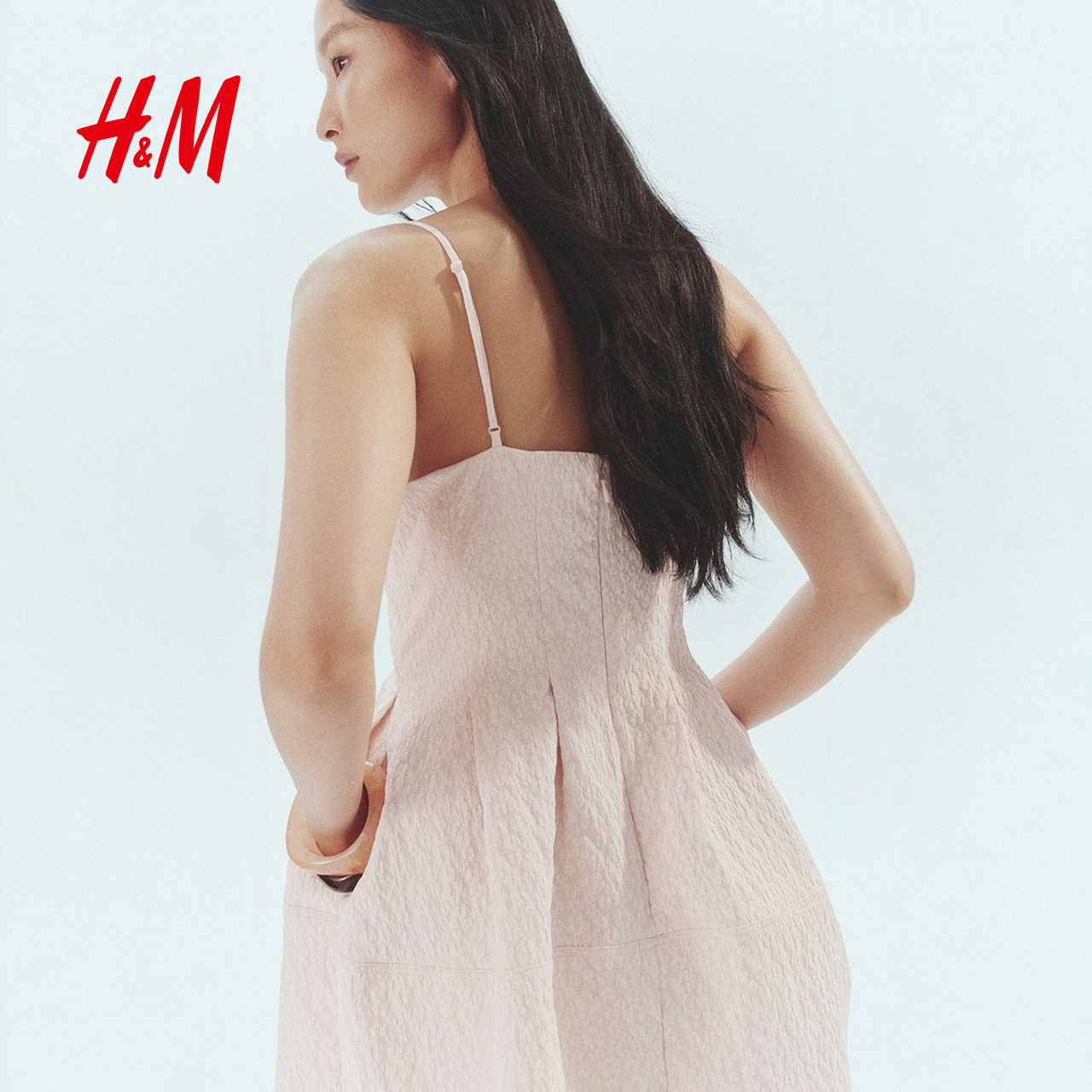 HM女装背心吊带连衣裙2025冬季新款气质提花梭织连身裙1295087
