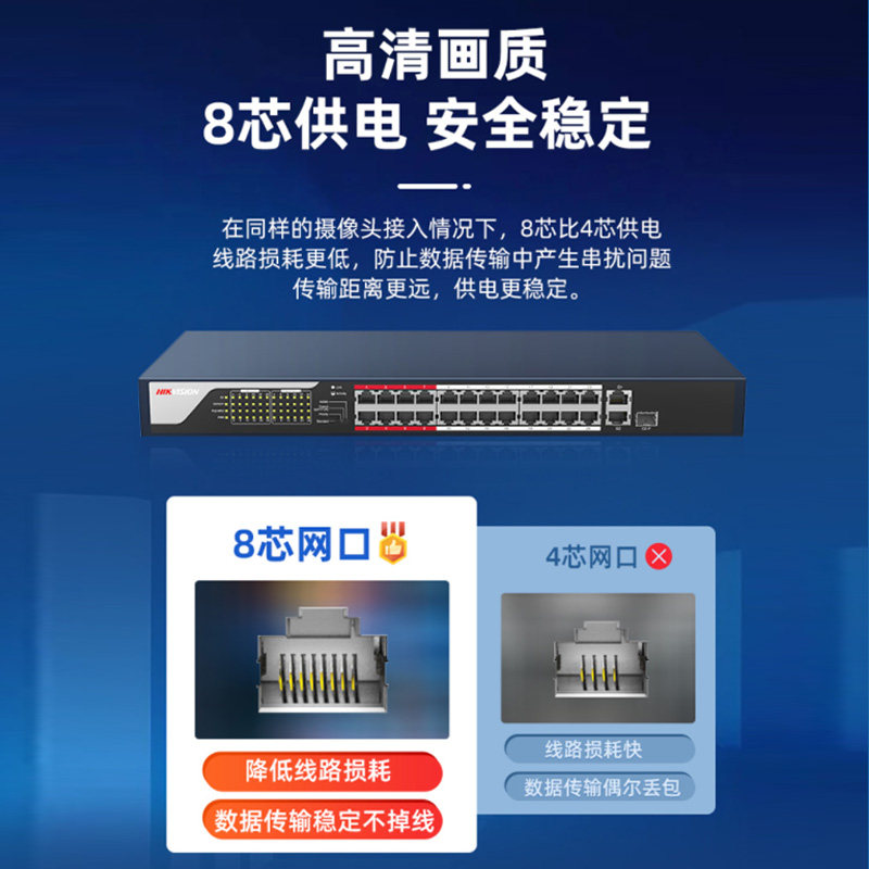 海康威视poe交换机4口5口8口16口24口千兆网络工业级网线供电国标48V分线器路由器分流器海康监控百兆交换机