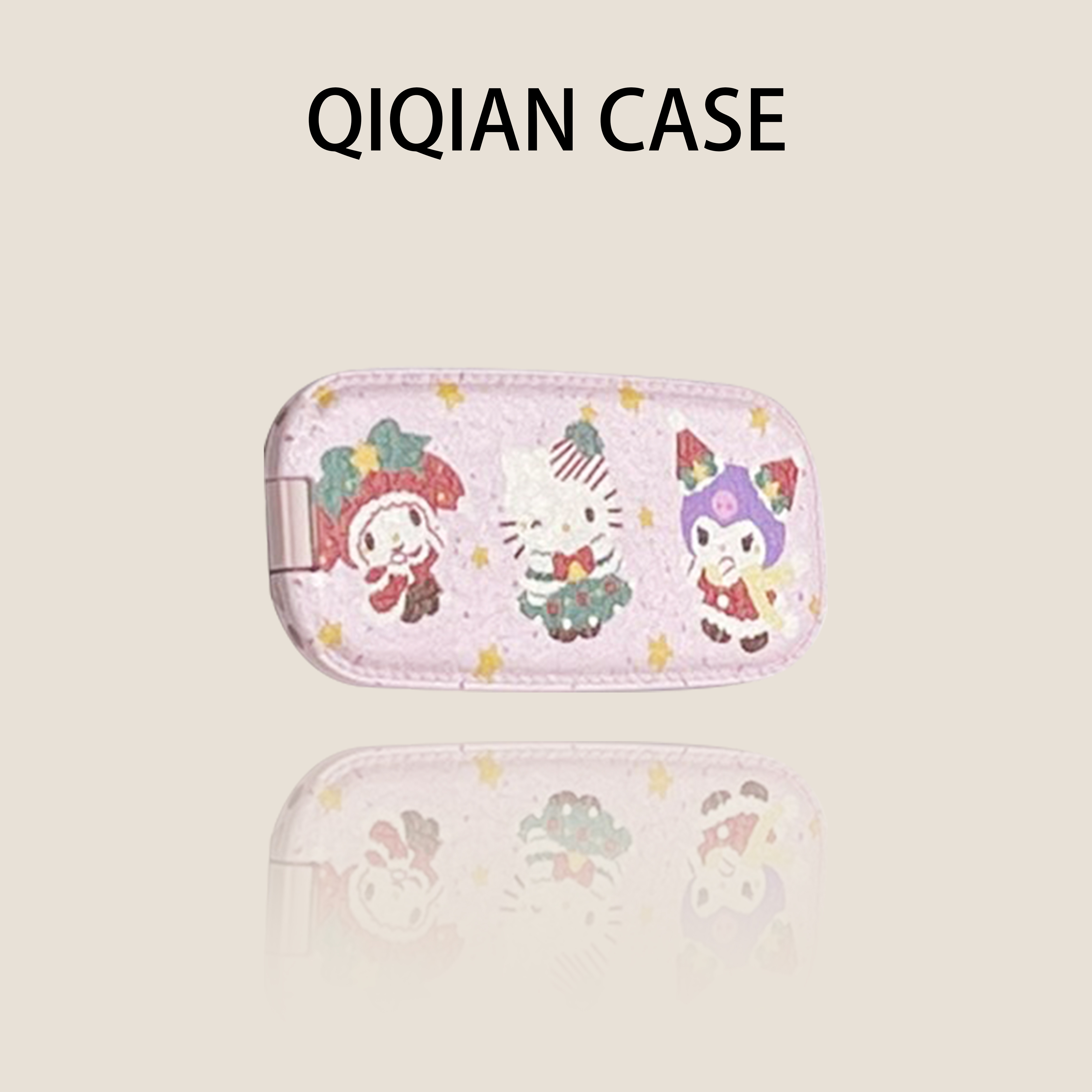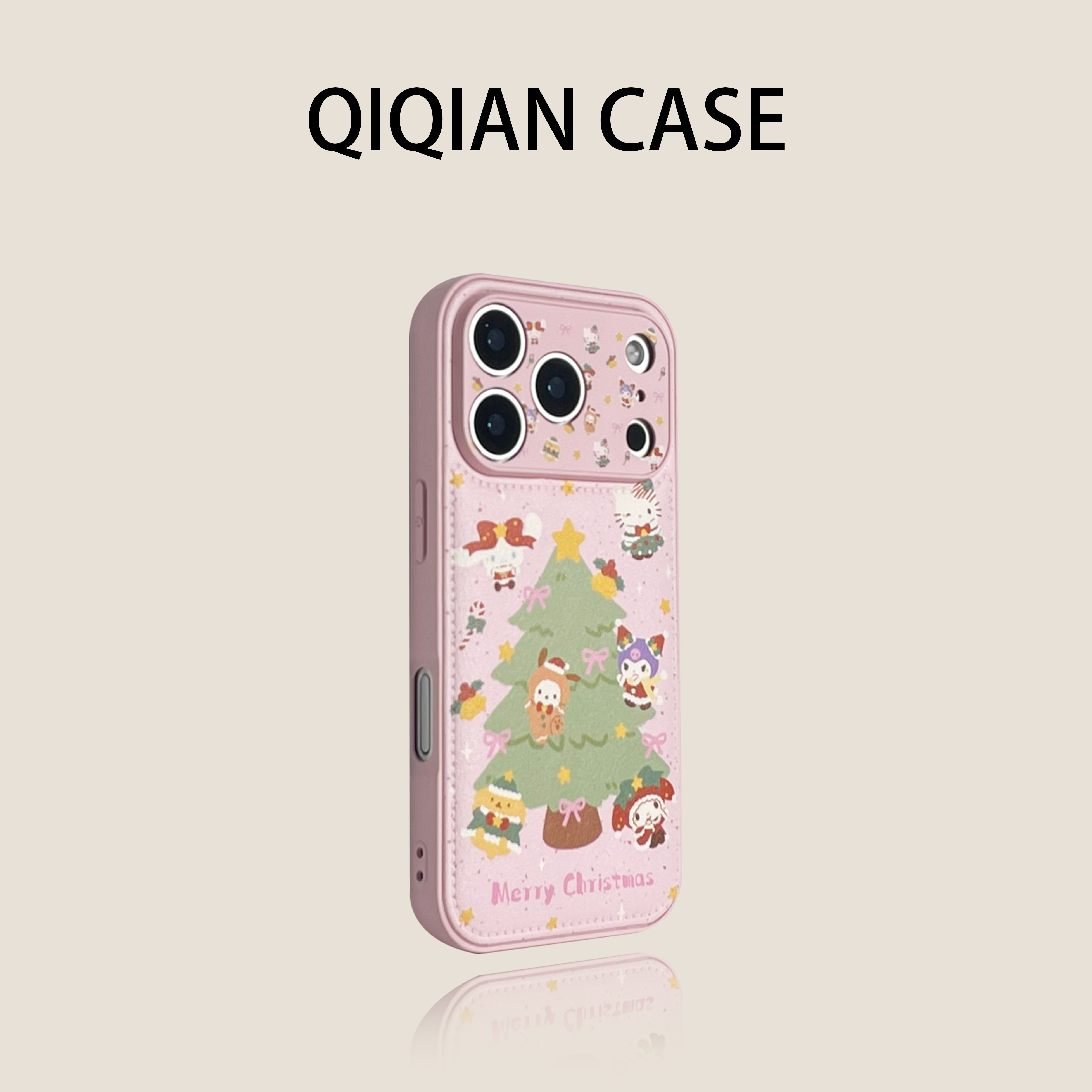 启乾 可爱肤感直边皮纹鼓包粉底圣诞树三丽鸥带支架iPhone17/16手机壳适用苹果15/14promax硬壳卡通趣味ins风