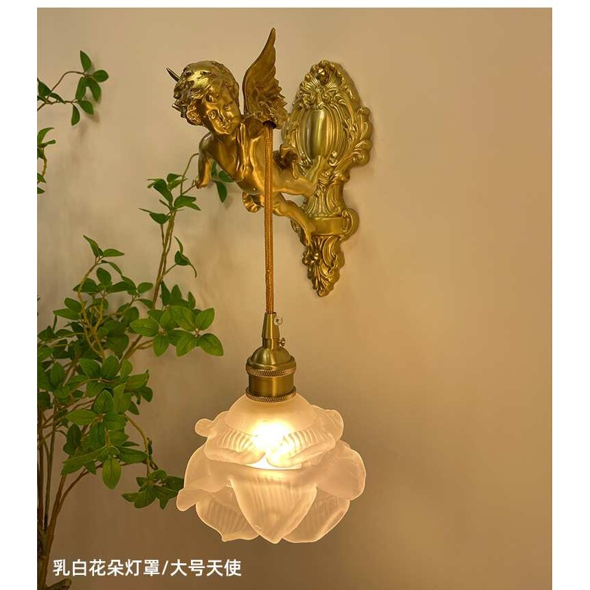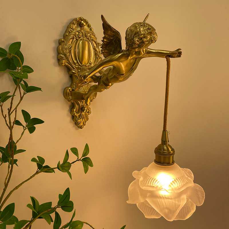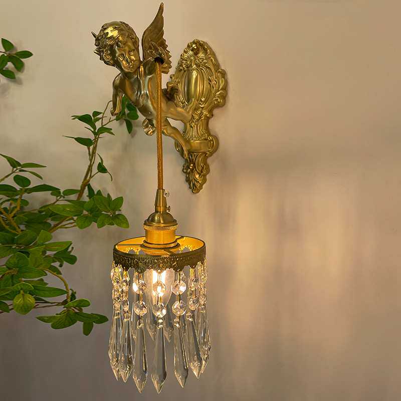 法式全铜天使壁灯中古客厅卧室书房过道墙灯美式复古轻奢水晶灯具