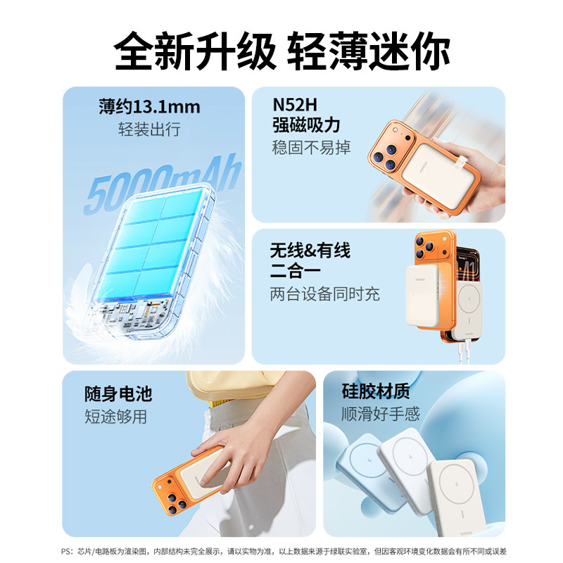 【充电宝3C认证可上飞机】绿联磁吸款无线充电宝16适用苹果iPhone专用17超薄小巧便携标识移动电源官方旗舰店