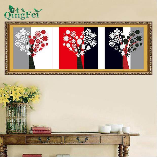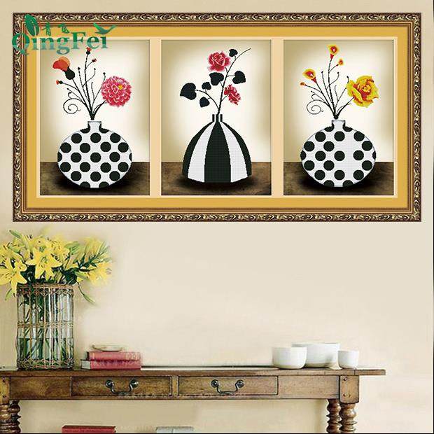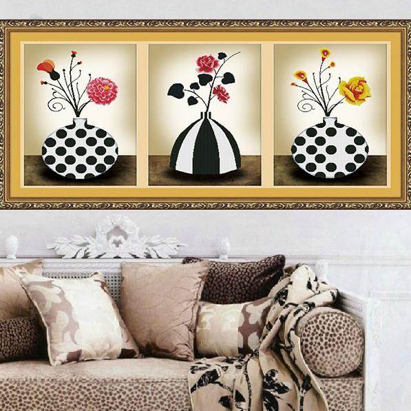 青飞缤纷绽放情定三生简约优雅三联画十字绣玫瑰花瓶现代简约客厅