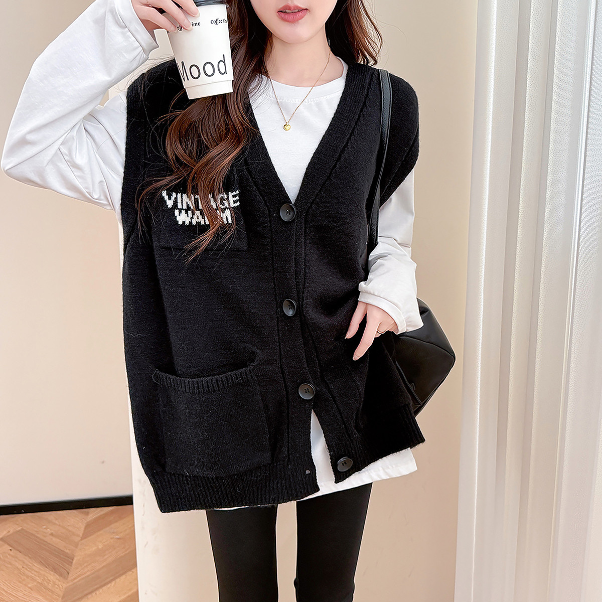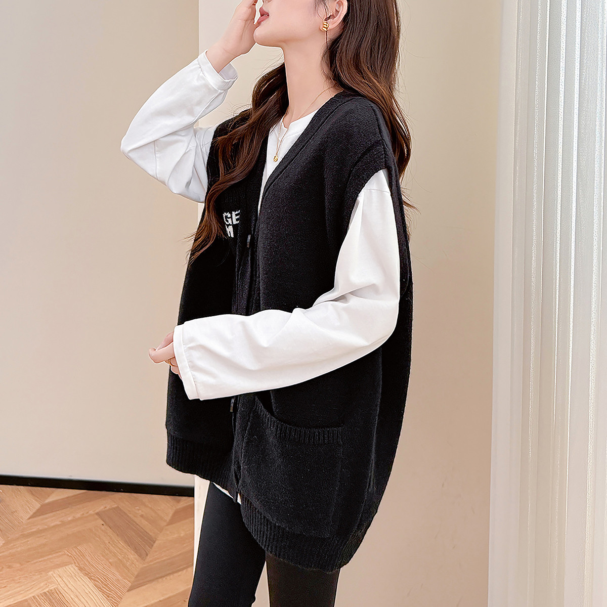 2026新款女装宽松针织开衫纯棉春秋外套纯色百搭圆领毛衣针织衫潮